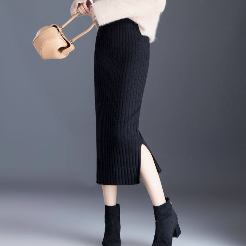 Шерстяная трикотажная демисезонная длинная длинная юбка, увеличенная толщина, с акцентом на бедрах, средней длины, коллекция 2021