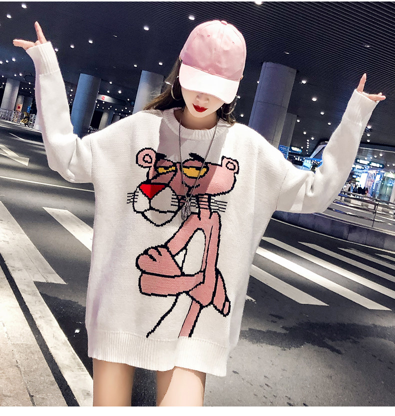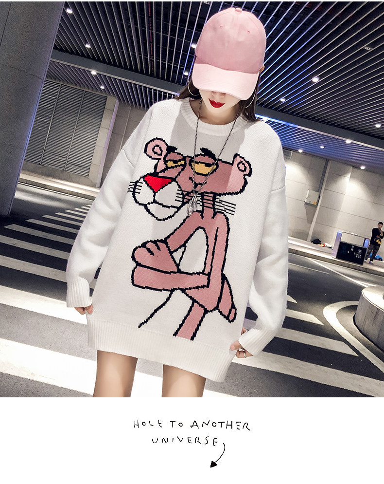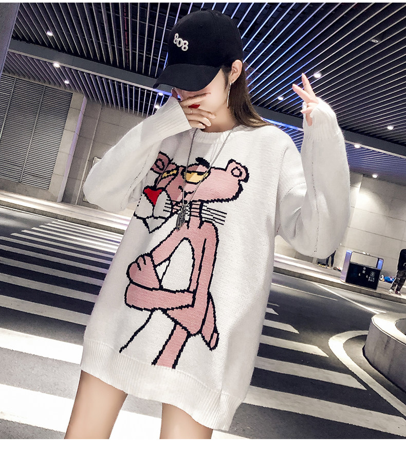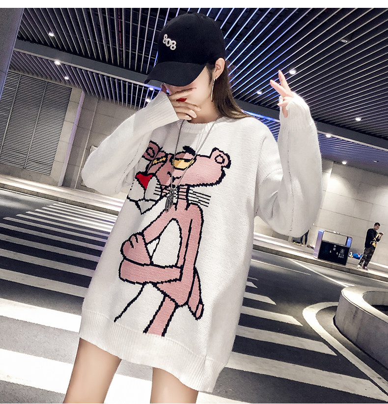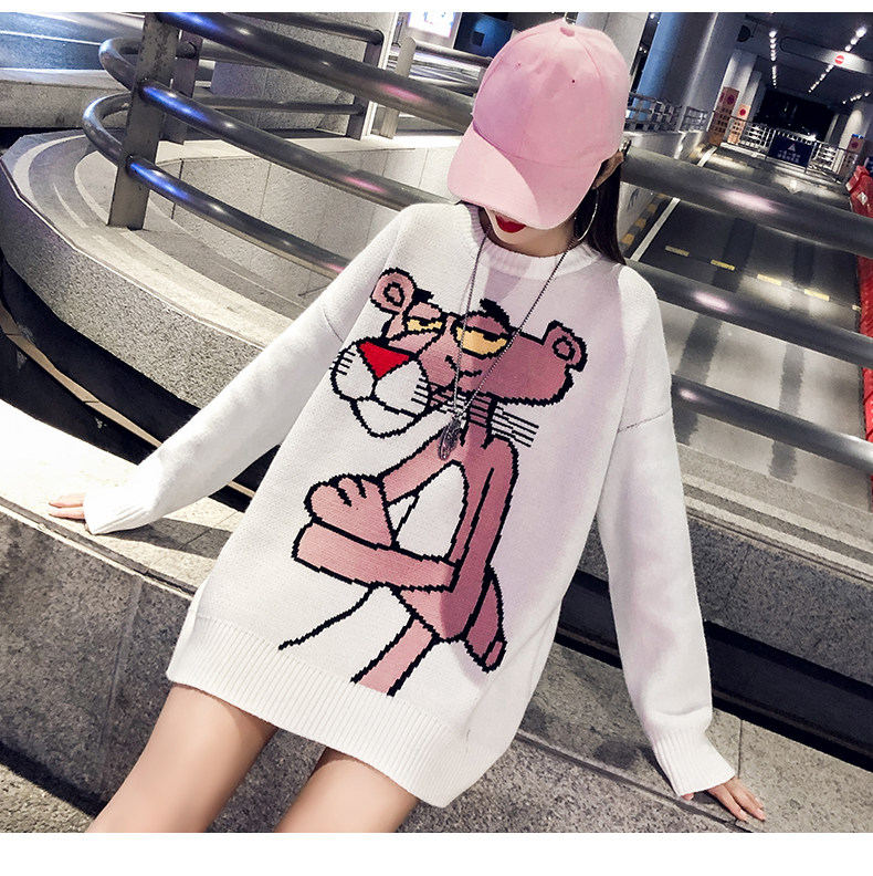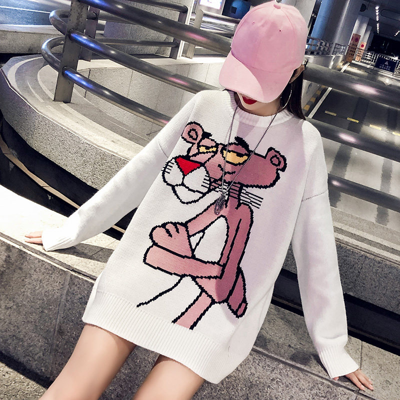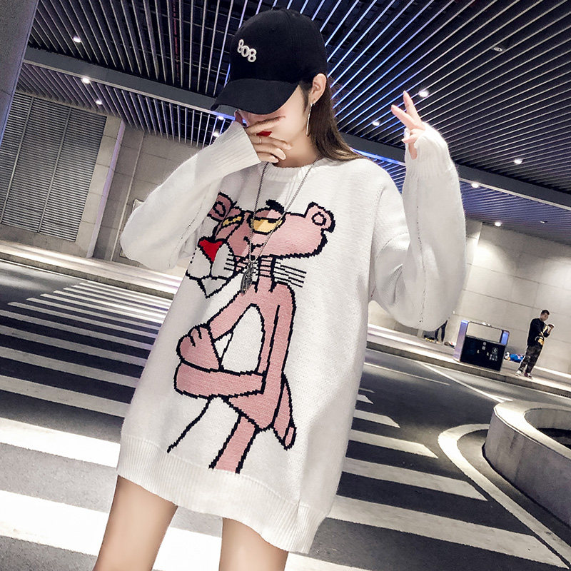 Мультяшный свитер, дизайнерский демисезонный трикотажный длинный комплект, в западном стиле, свободный крой, тренд сезона, средней длины