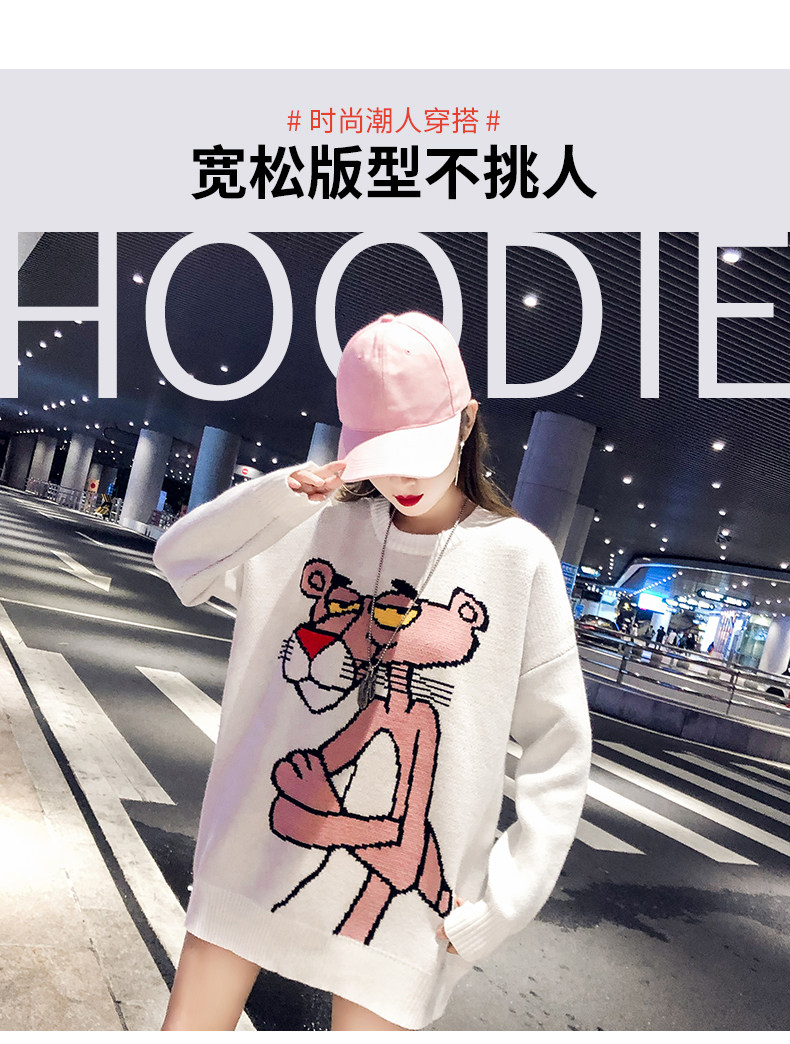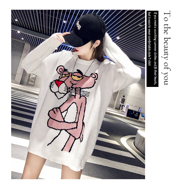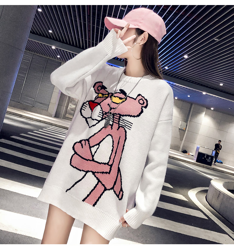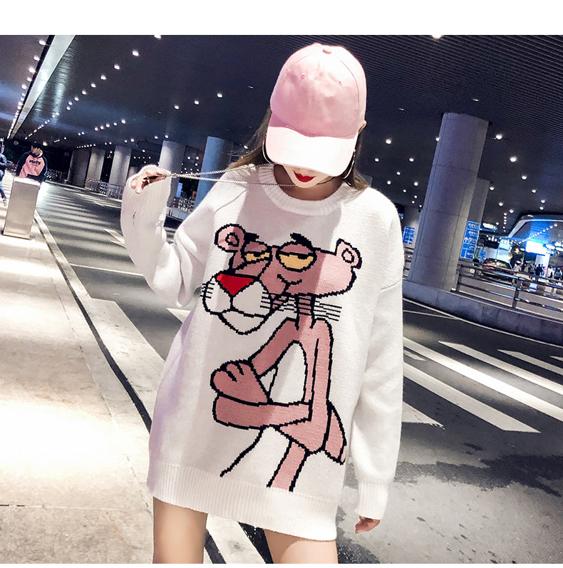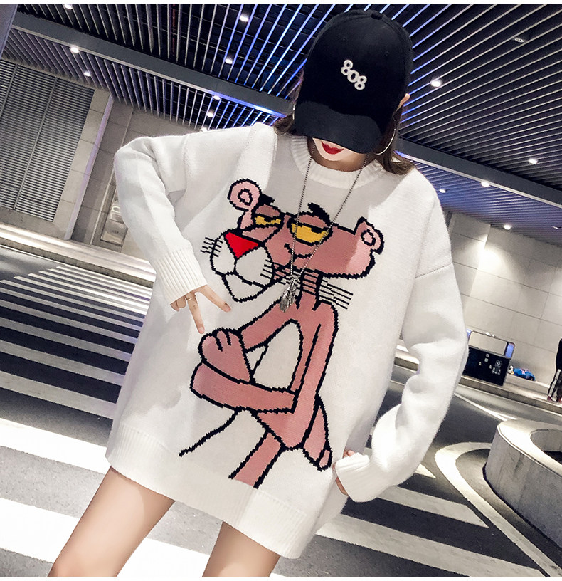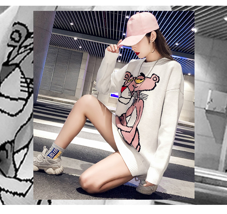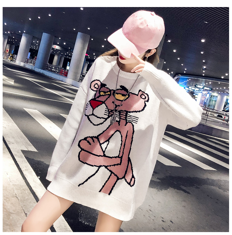 Мультяшный свитер, дизайнерский демисезонный трикотажный длинный комплект, в западном стиле, свободный крой, тренд сезона, средней длины