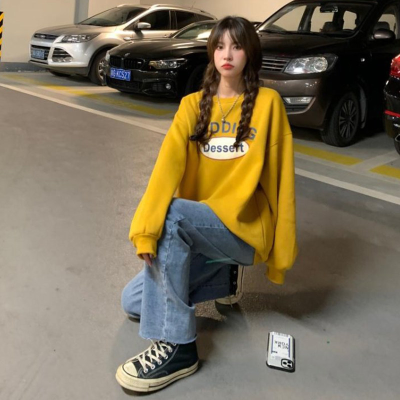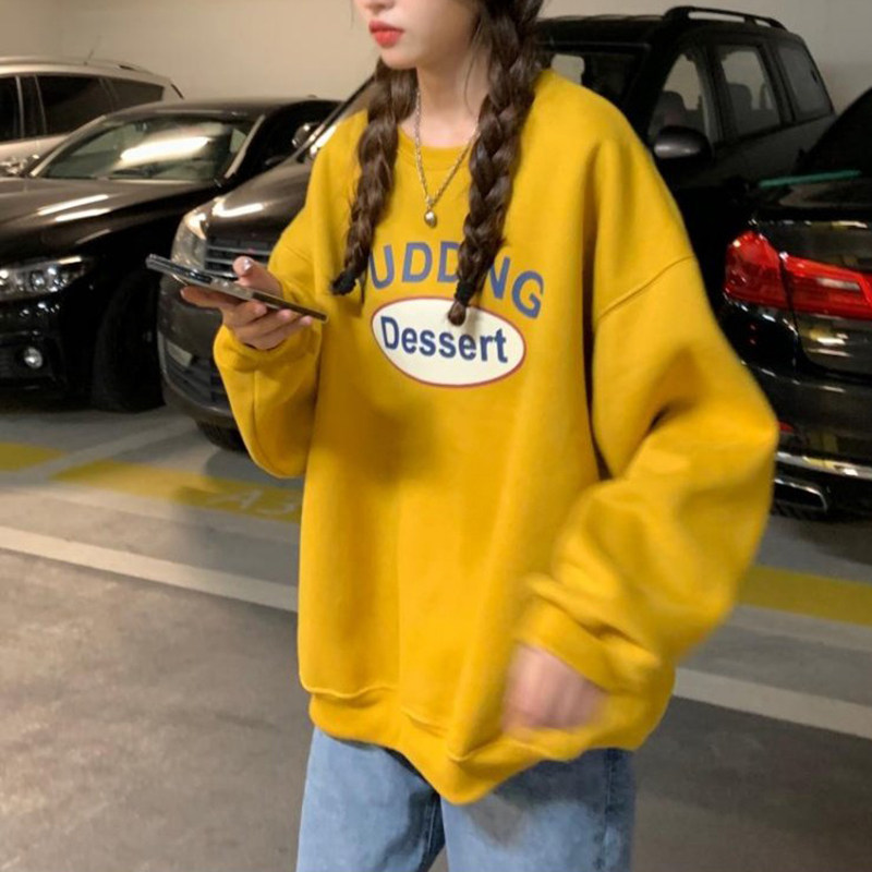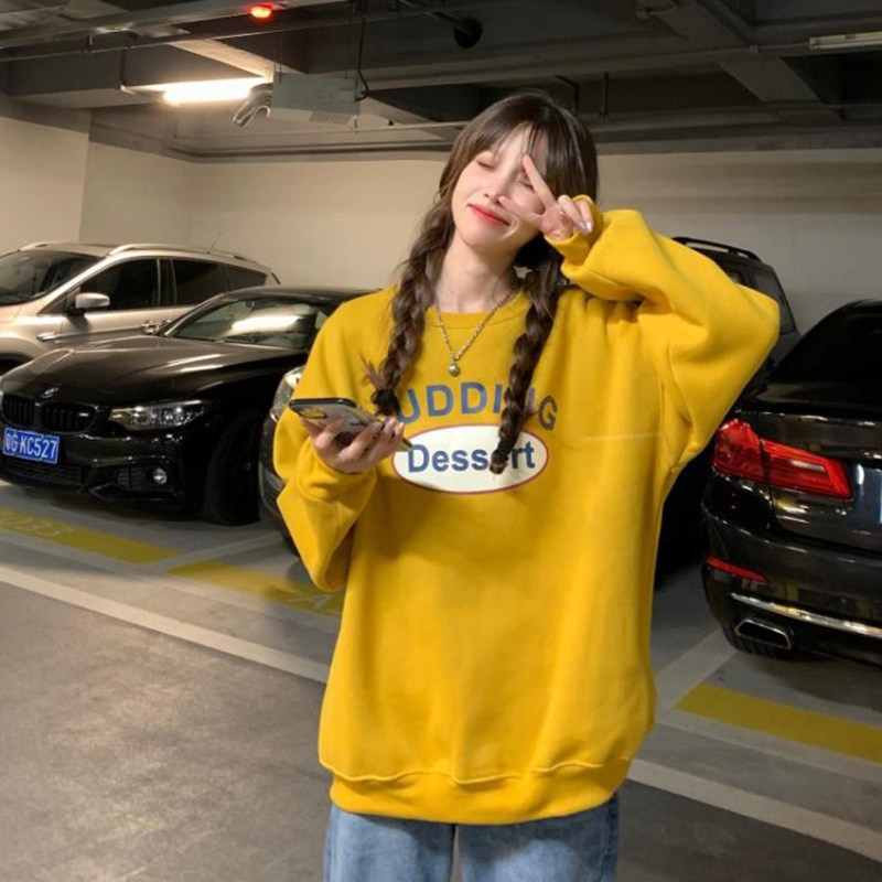 Желтая длинная осенняя тонкая брендовая толстовка, большой размер, в корейском стиле, средней длины