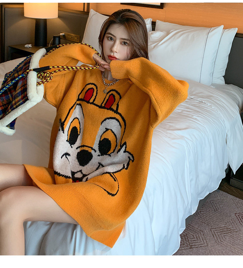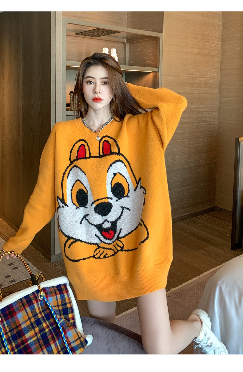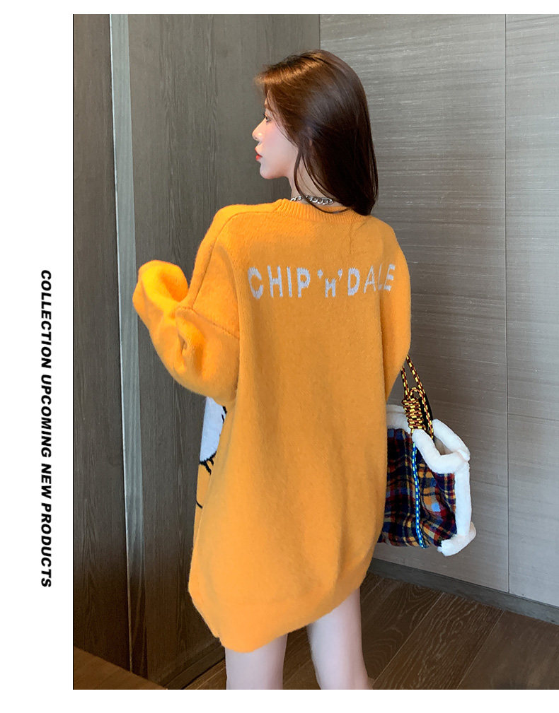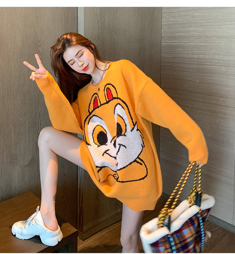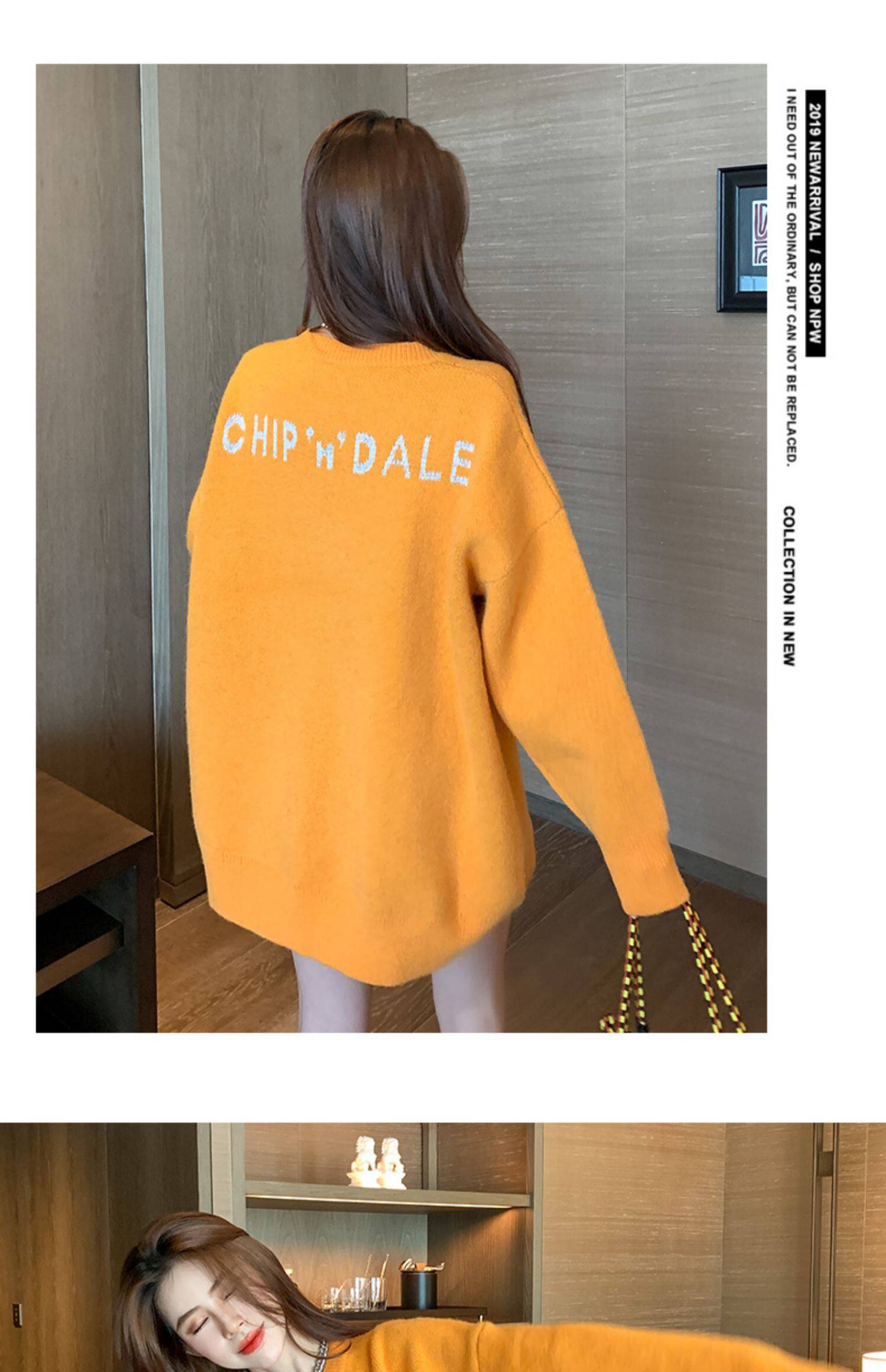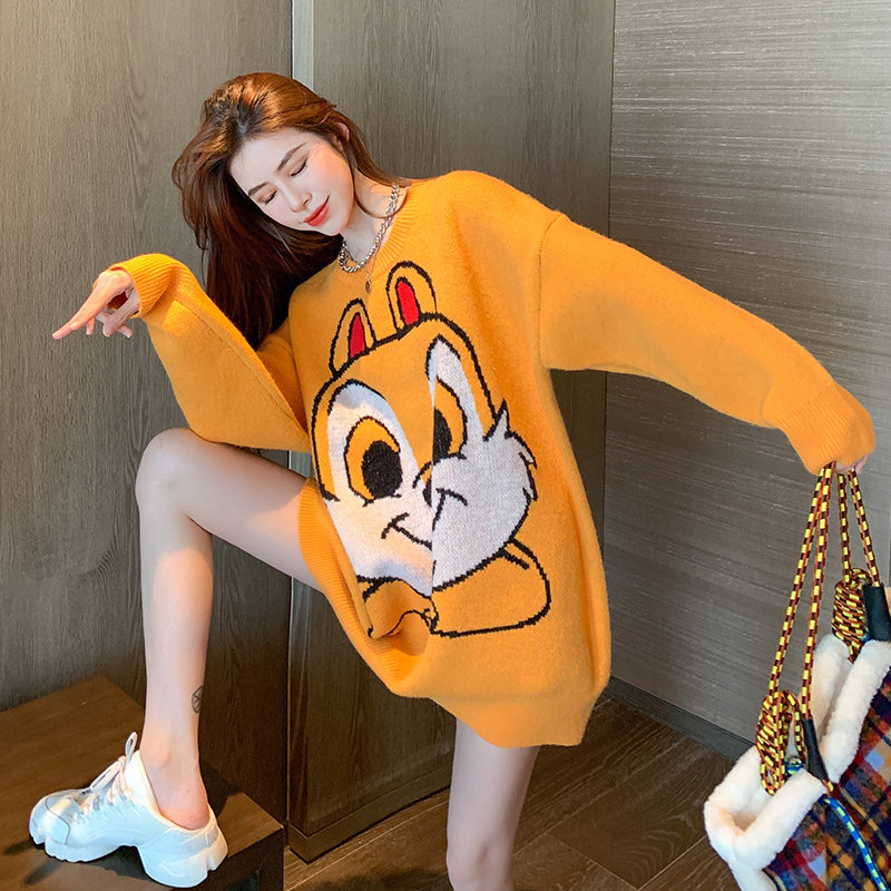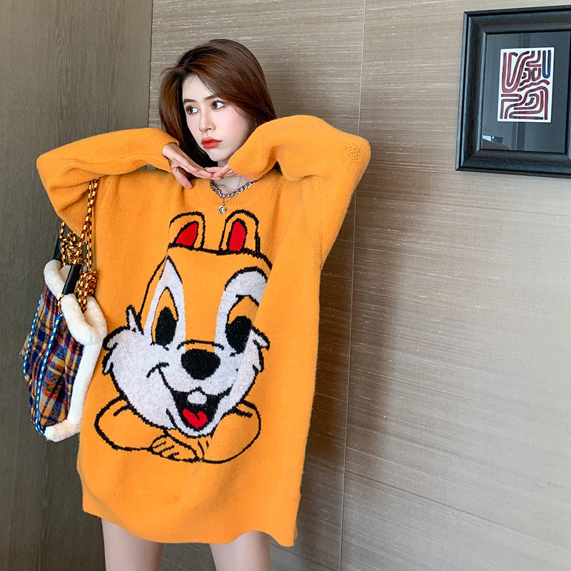 Оранжевый японский длинный модный дизайнерский демисезонный трикотажный свитер, средней длины, свободный крой, в корейском стиле, тренд сезона