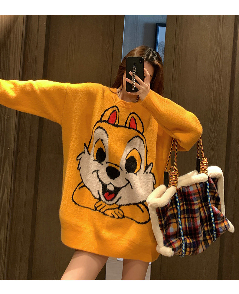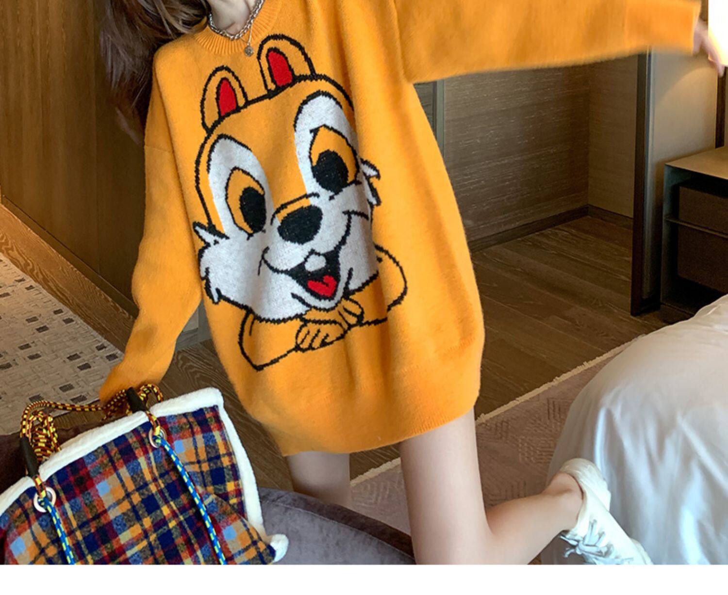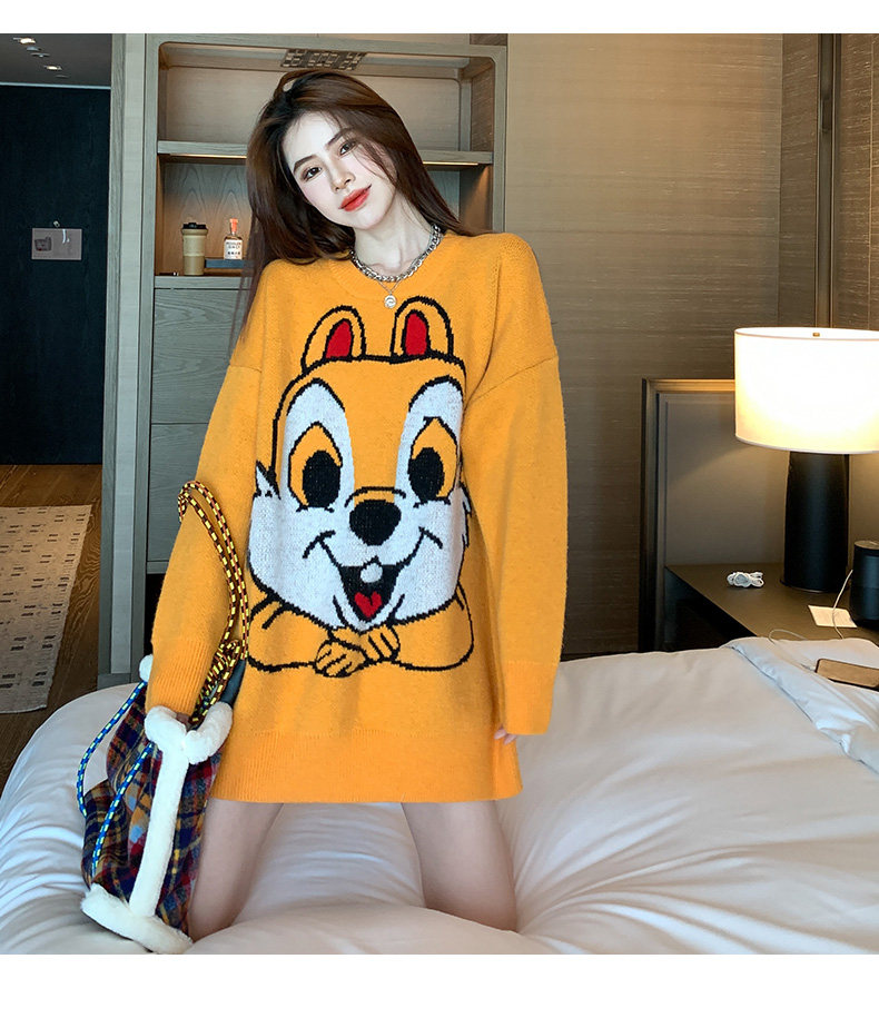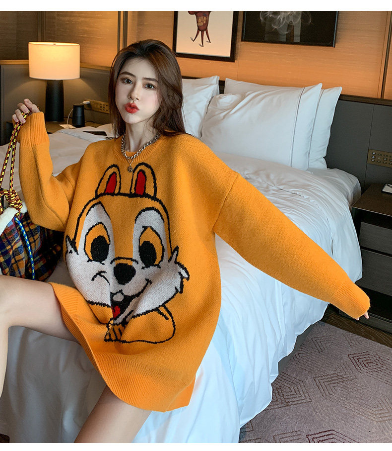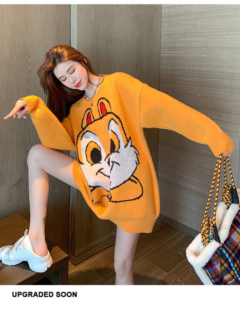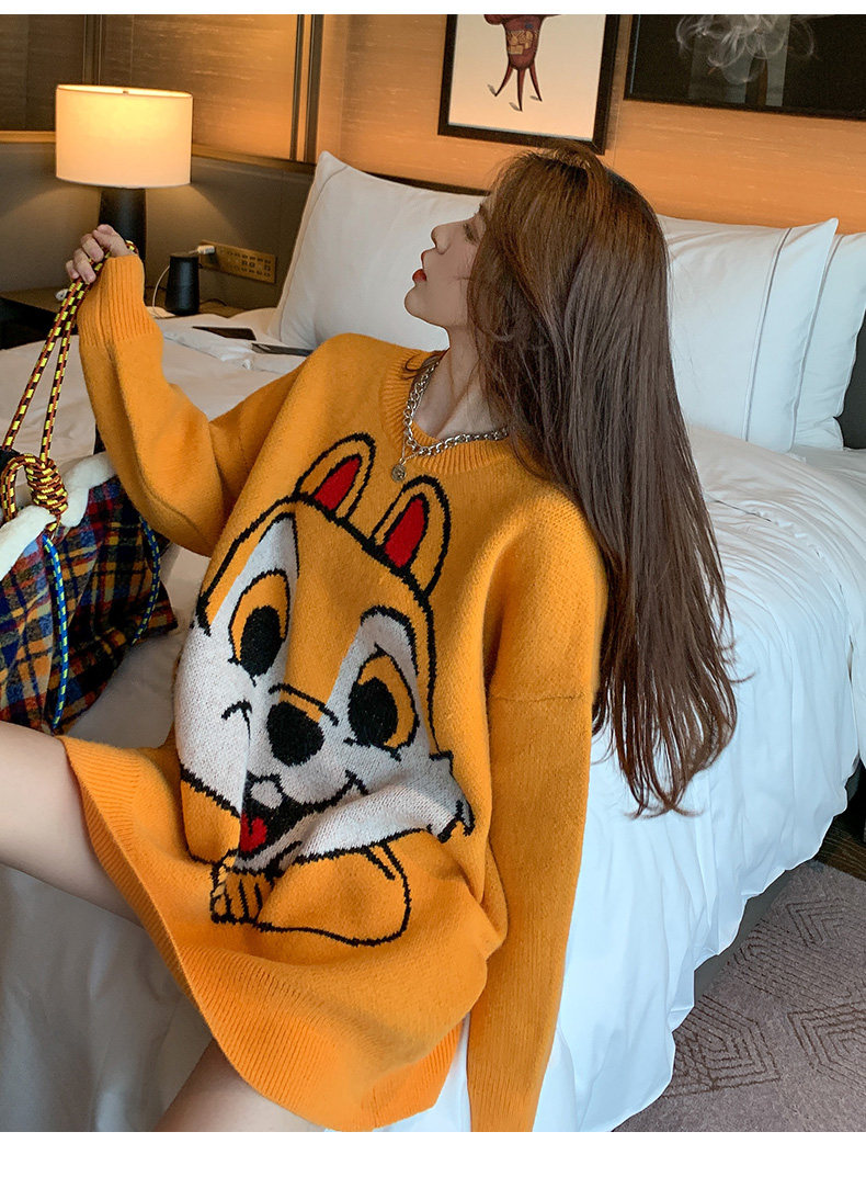 Оранжевый японский длинный модный дизайнерский демисезонный трикотажный свитер, средней длины, свободный крой, в корейском стиле, тренд сезона