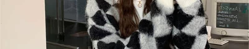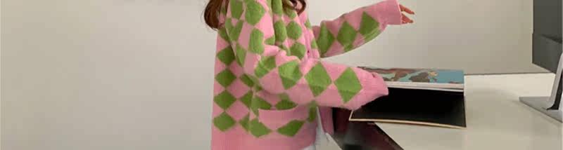 Демисезонный свитер, лонгслив, кардиган с ромбовидным узором, куртка, увеличенная толщина, в западном стиле, оверсайз