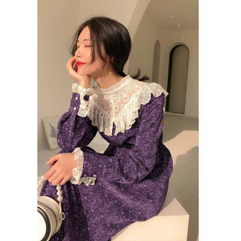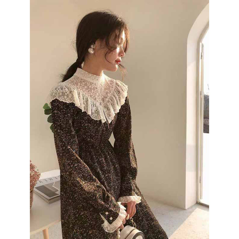 Дизайнерское кружевное платье, базовая осенняя длинная юбка, подходит для подростков, французский стиль, в цветочек