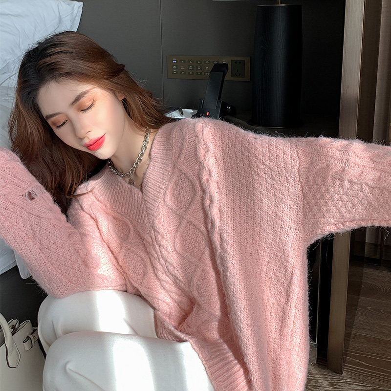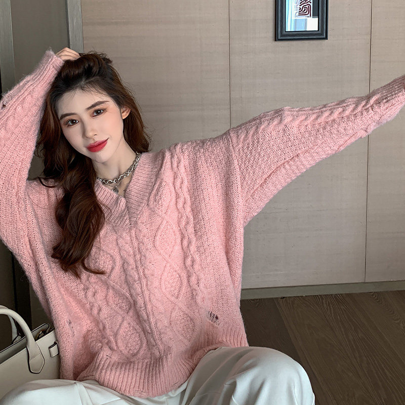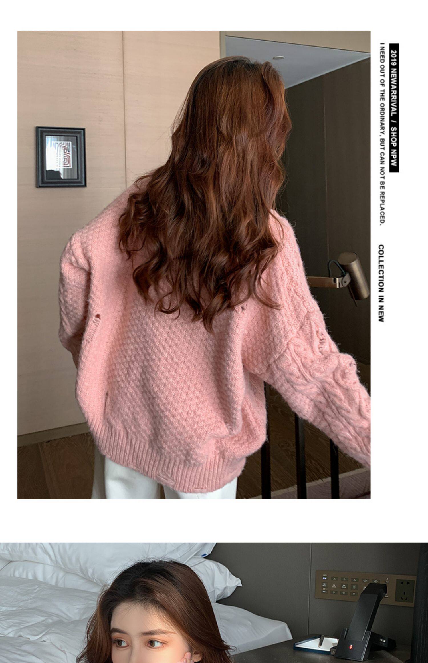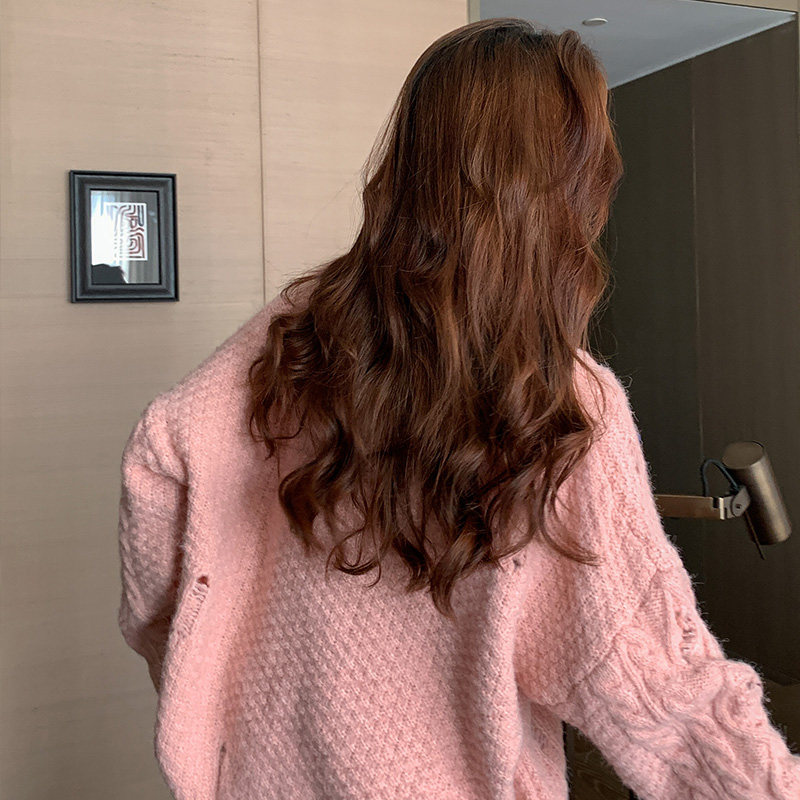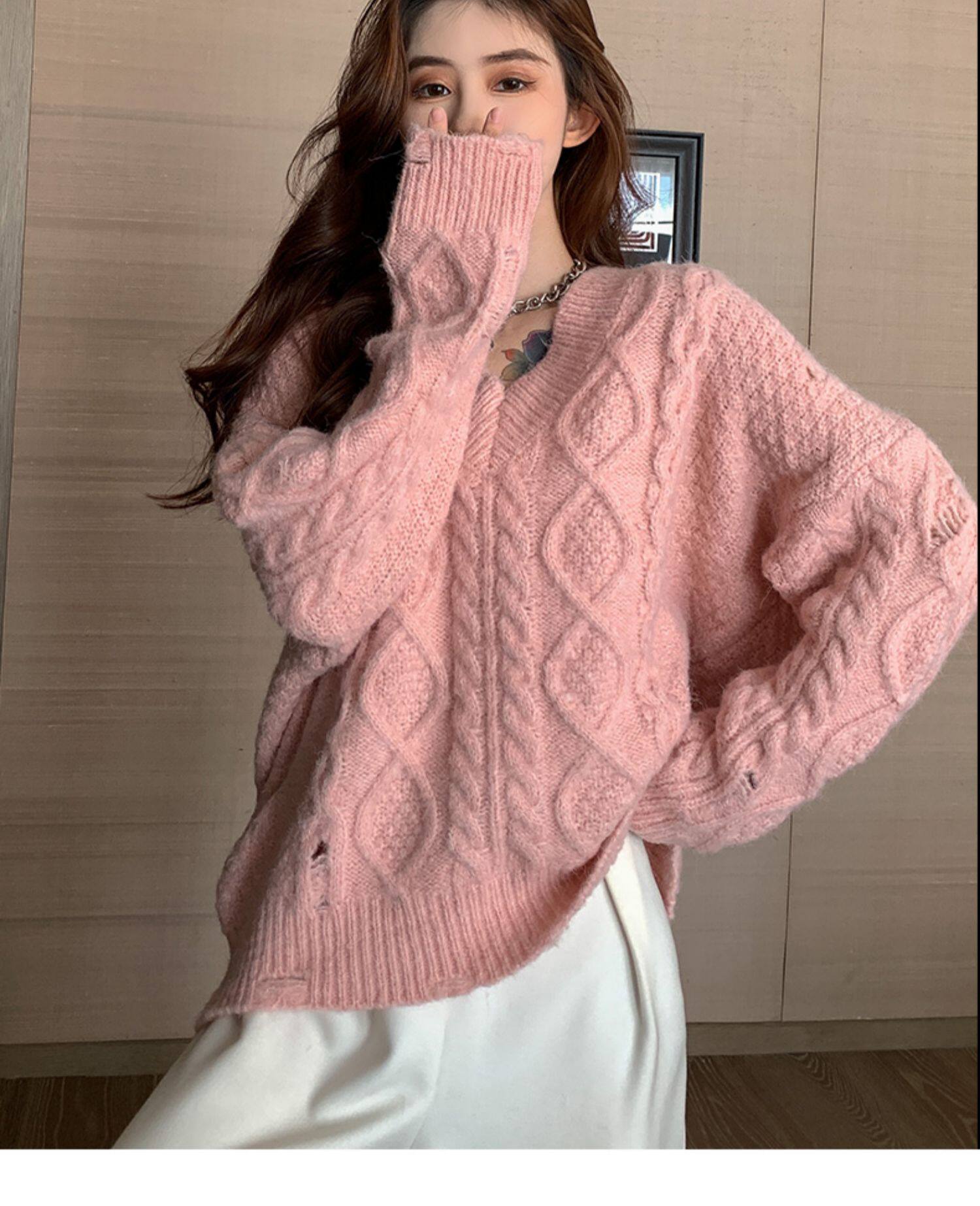 Розовый милый модный длинный демисезонный свитер, свободный крой, средней длины, увеличенная толщина
