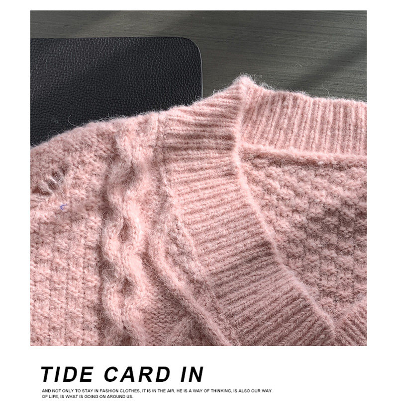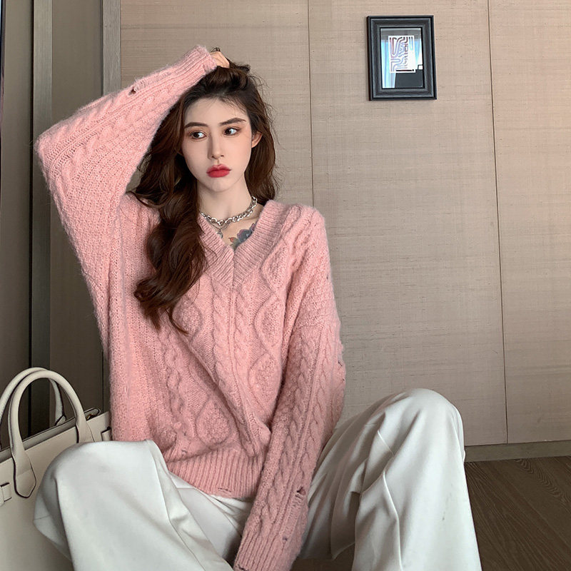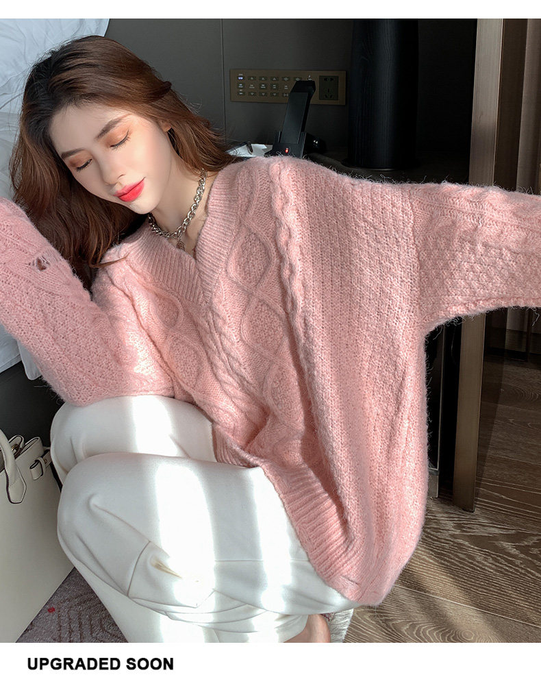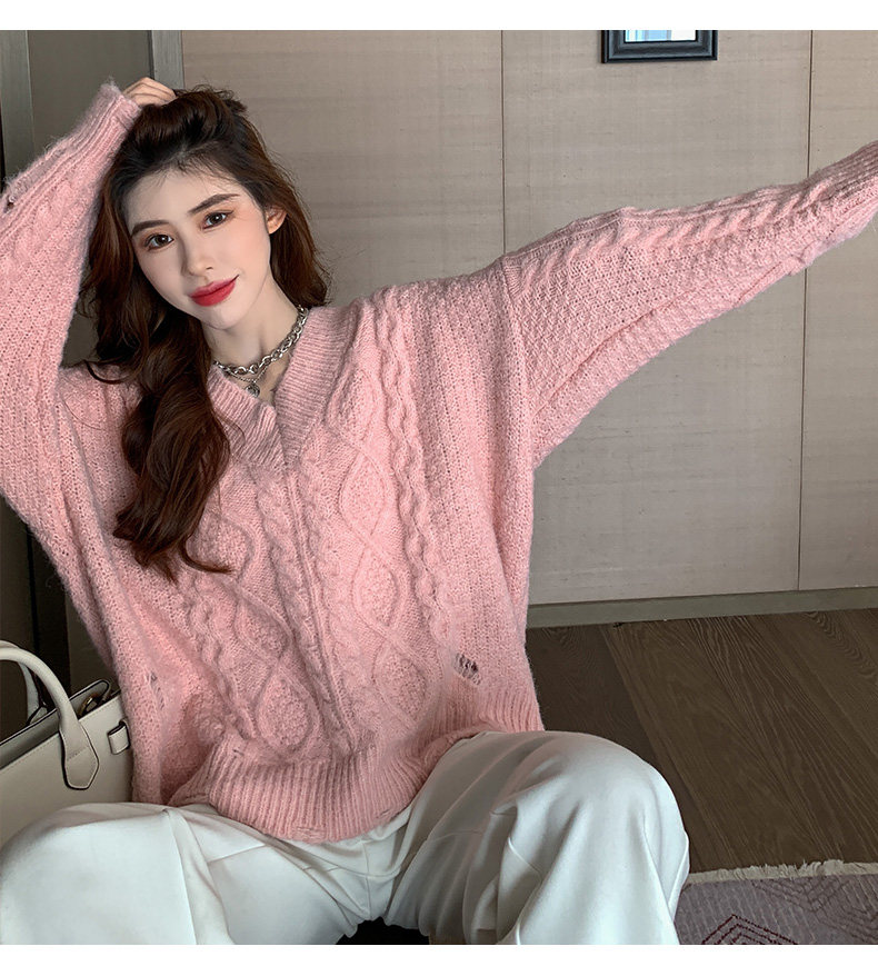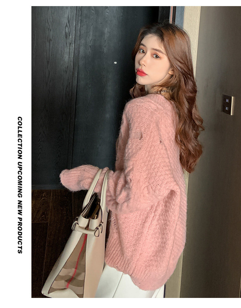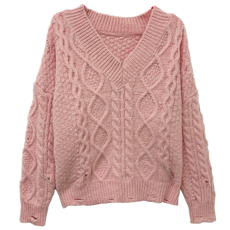 Розовый милый модный длинный демисезонный свитер, свободный крой, средней длины, увеличенная толщина
