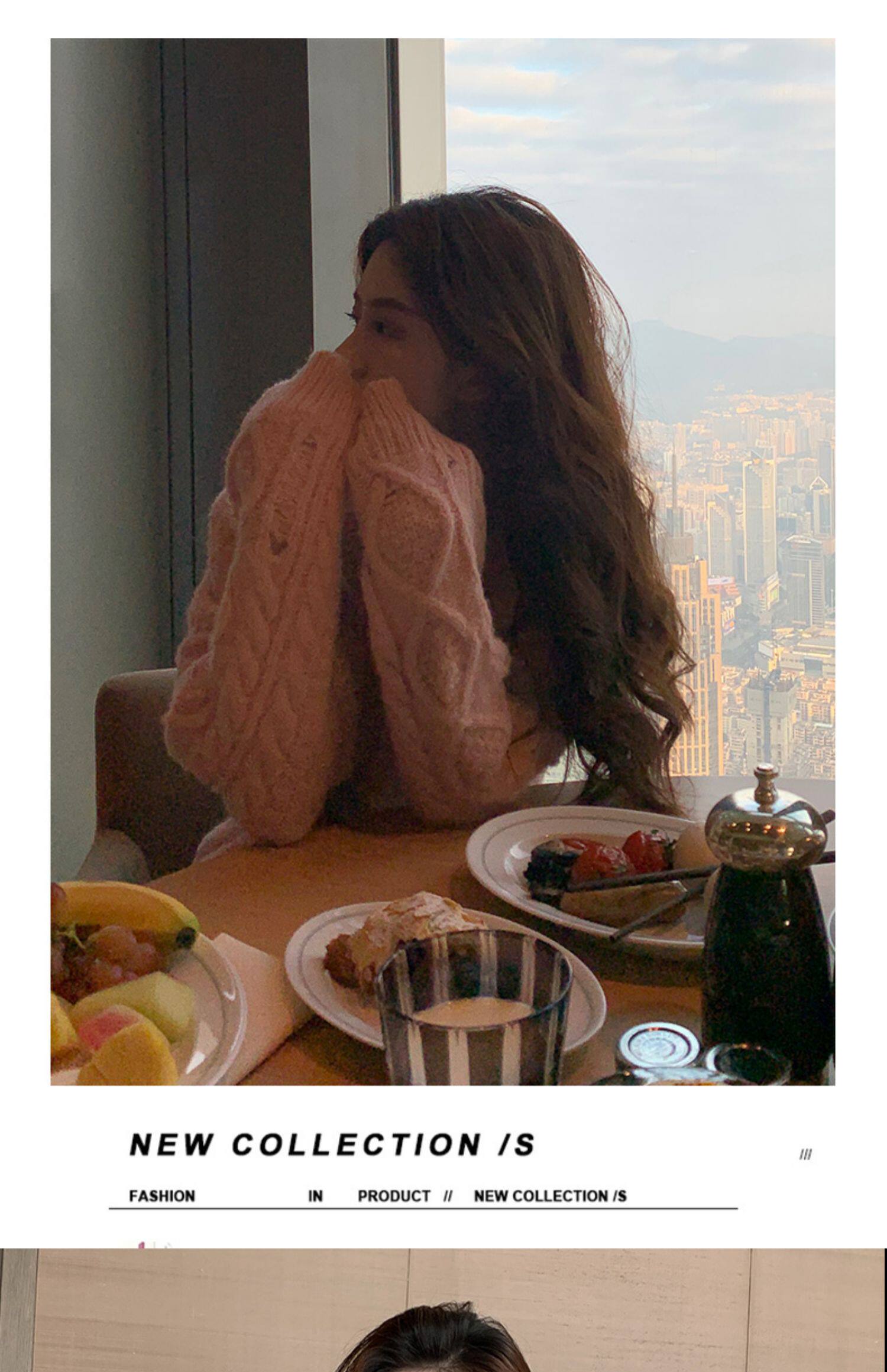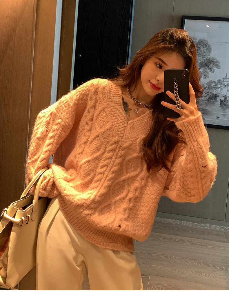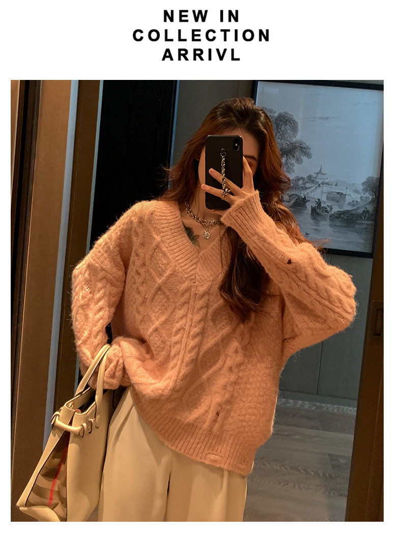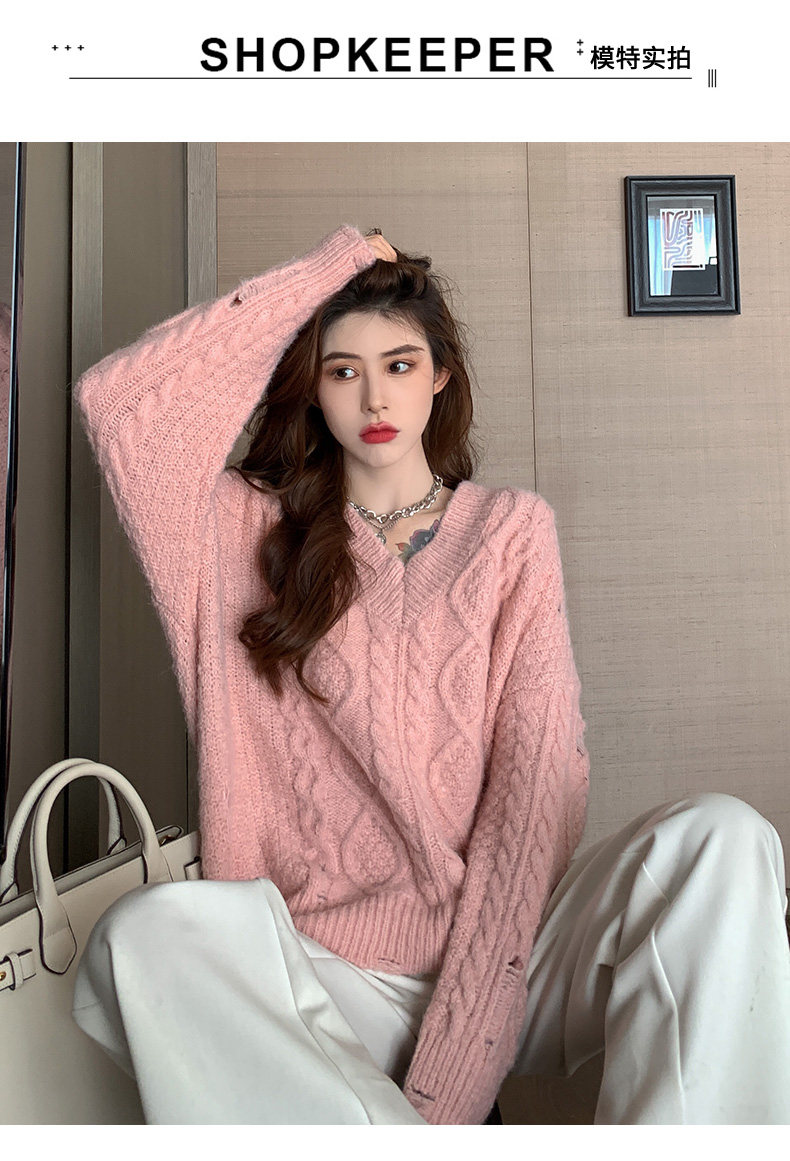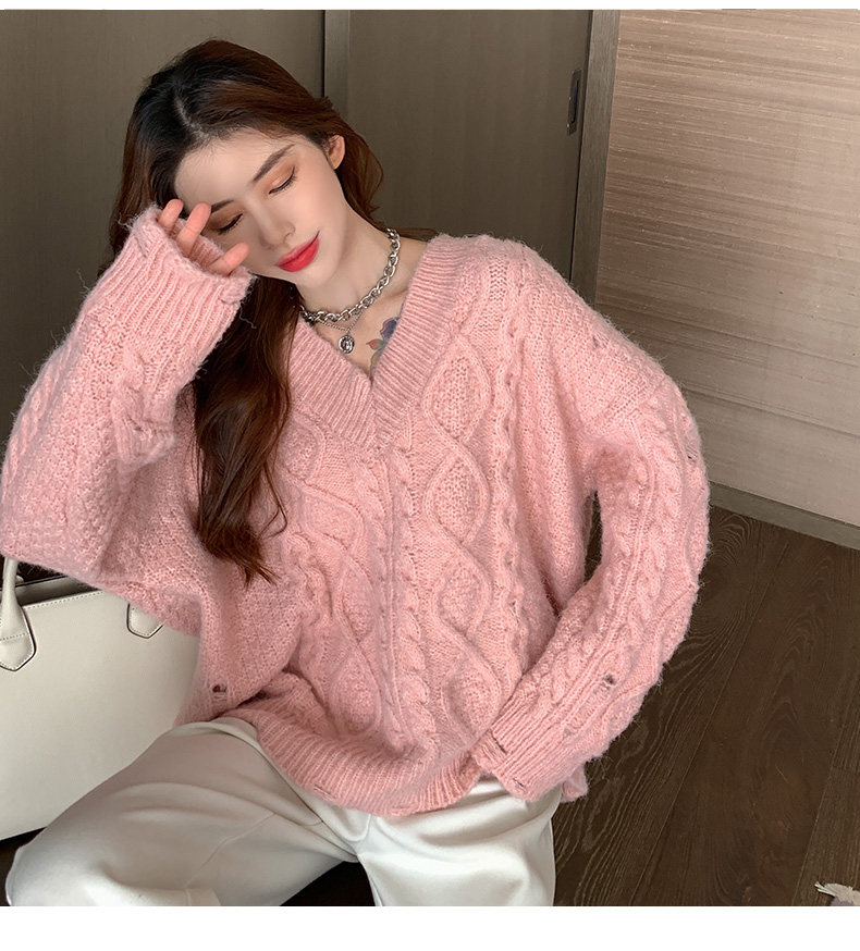 Розовый милый модный длинный демисезонный свитер, свободный крой, средней длины, увеличенная толщина