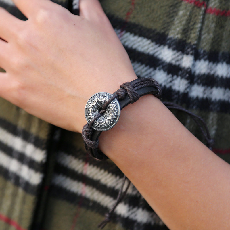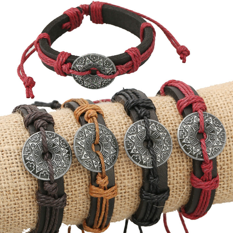Плетеный ретро металлический браслет ручной работы, мужской кожаный аксессуар