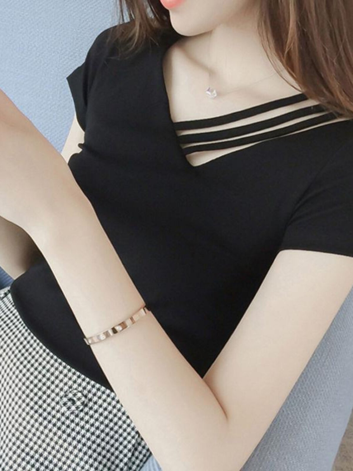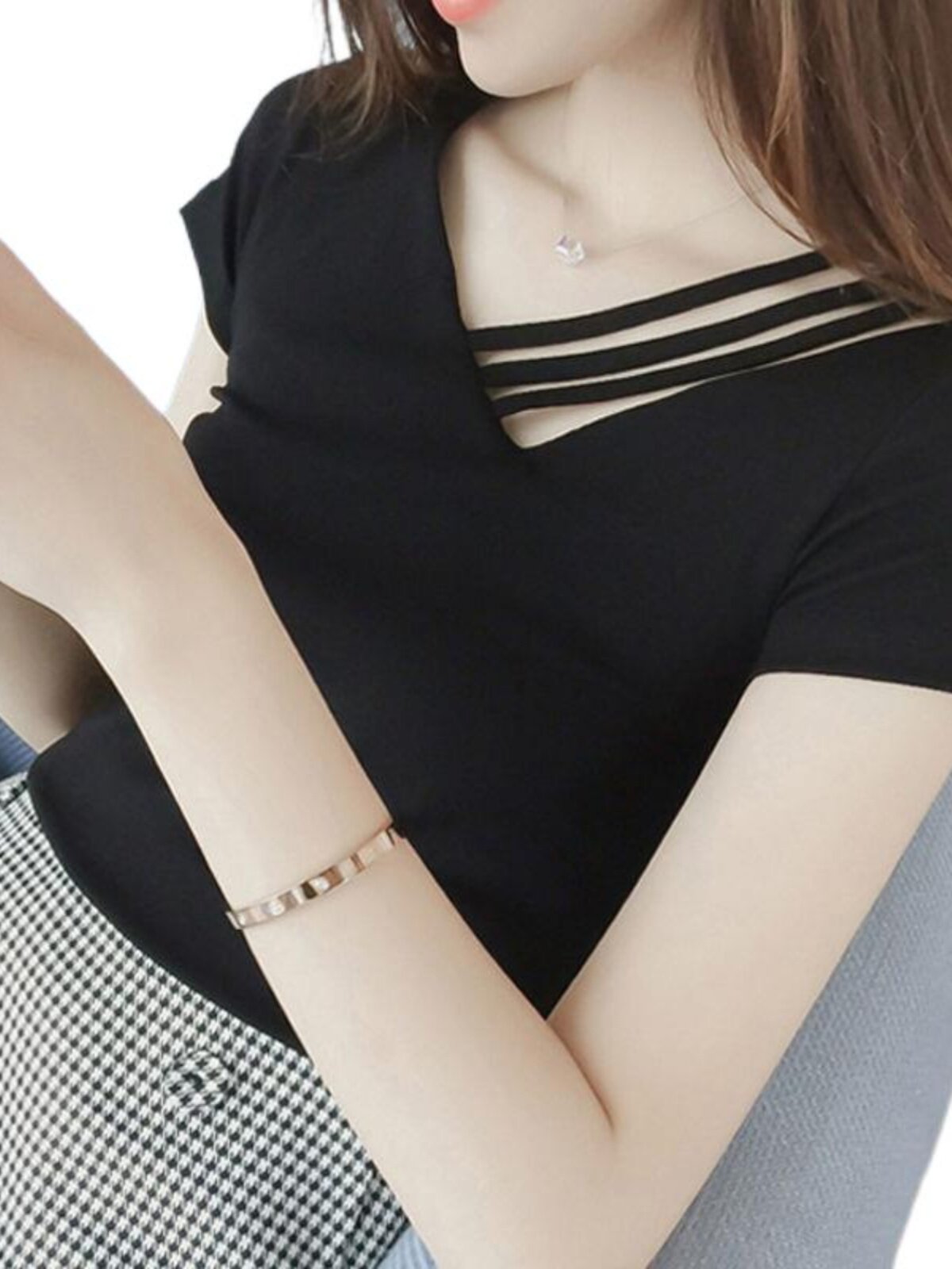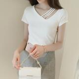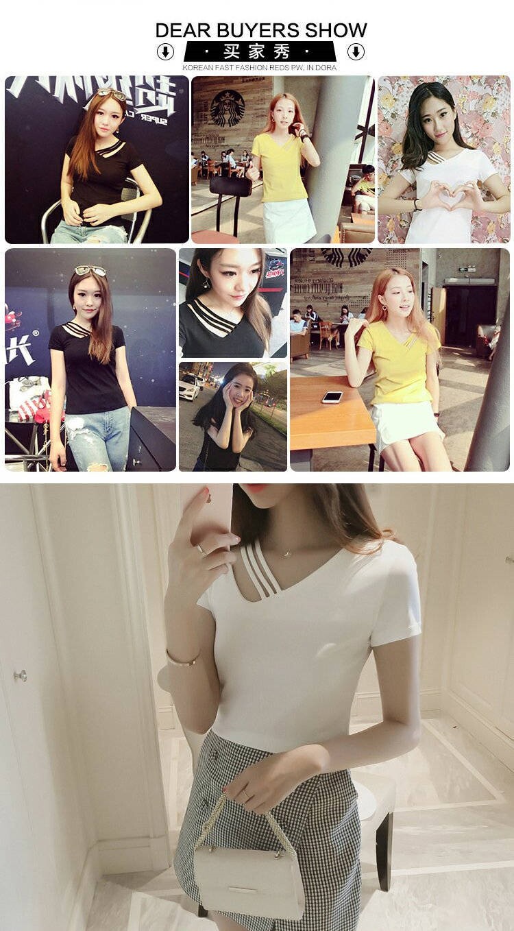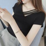 Модная и сексуальная летняя облегающая хлопковая рубашка с v-образным вырезом и короткими футболками с открытыми плечами и полым нижним кольцом для здоровья