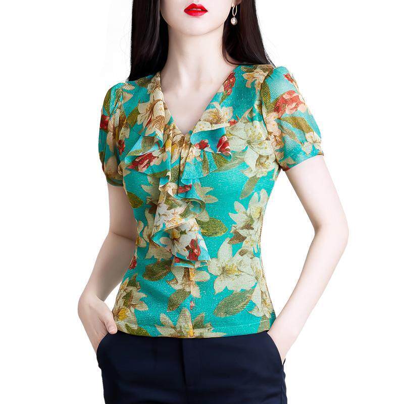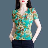 Сетчатая напечатанная лучшая женская короткая одежда 2023 Новая рукава короткая женская футболка модная маленькая шифоновая рубашка