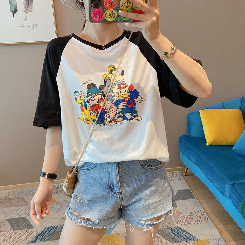 Летняя хлопковая мультяшная футболка с круглым воротником, короткий рукав