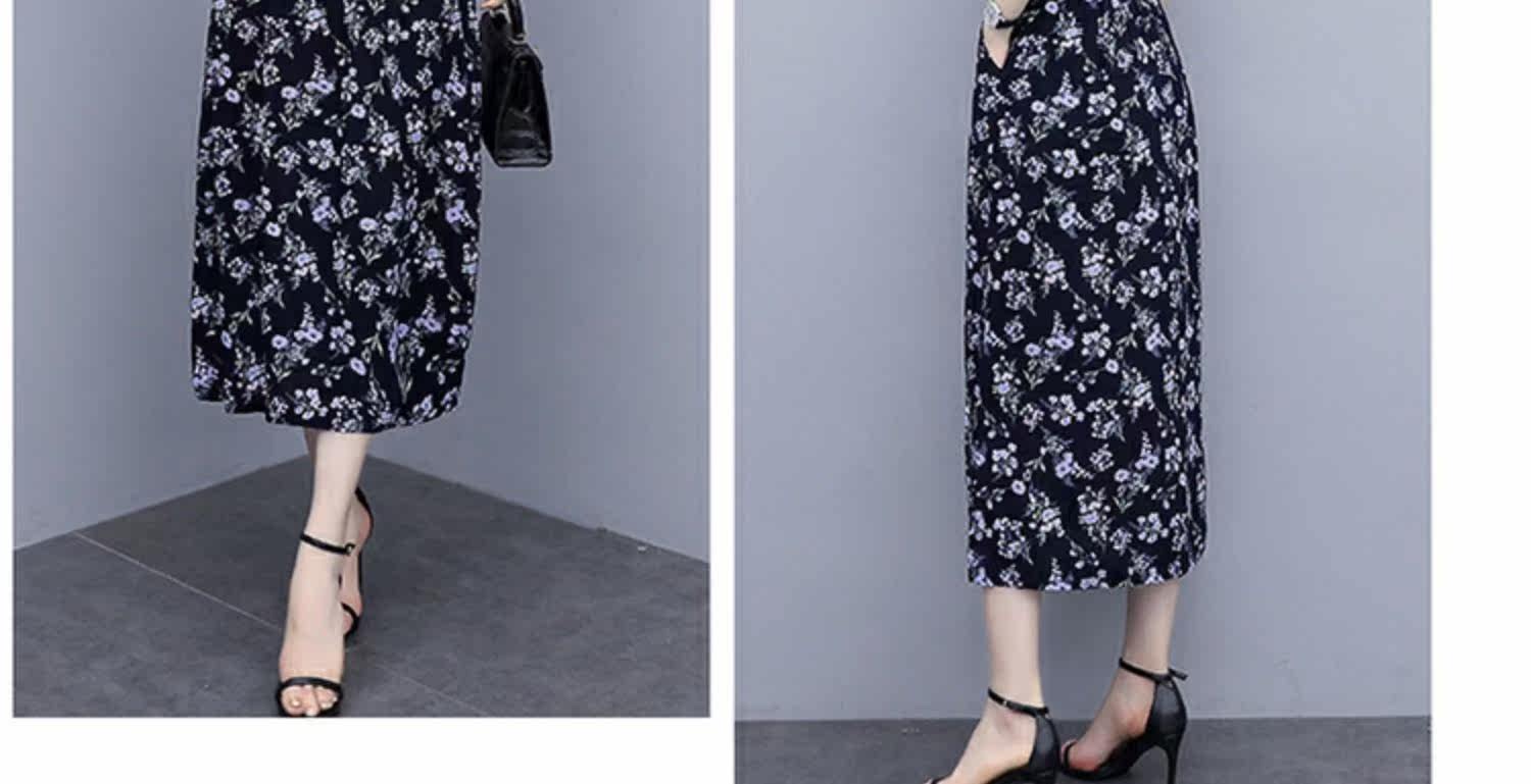 Ципао, шифоновое летнее платье, юбка, 2021 года, короткий рукав