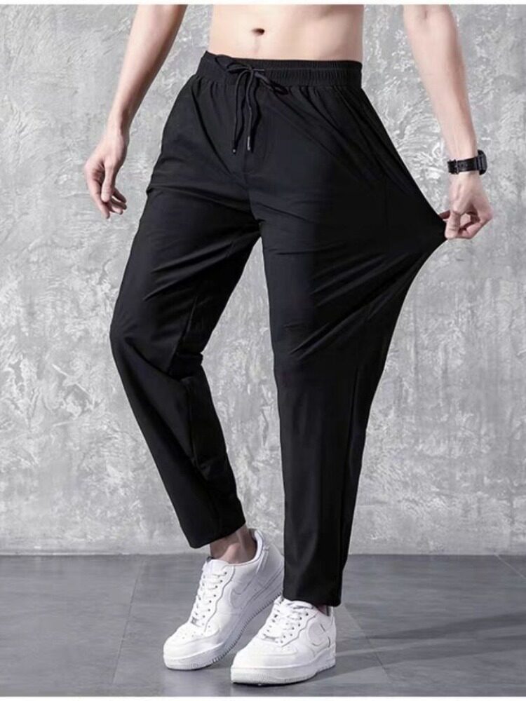 Летние тонкие эластичные шелковые мужские спортивные штаны, большой размер, свободный прямой крой