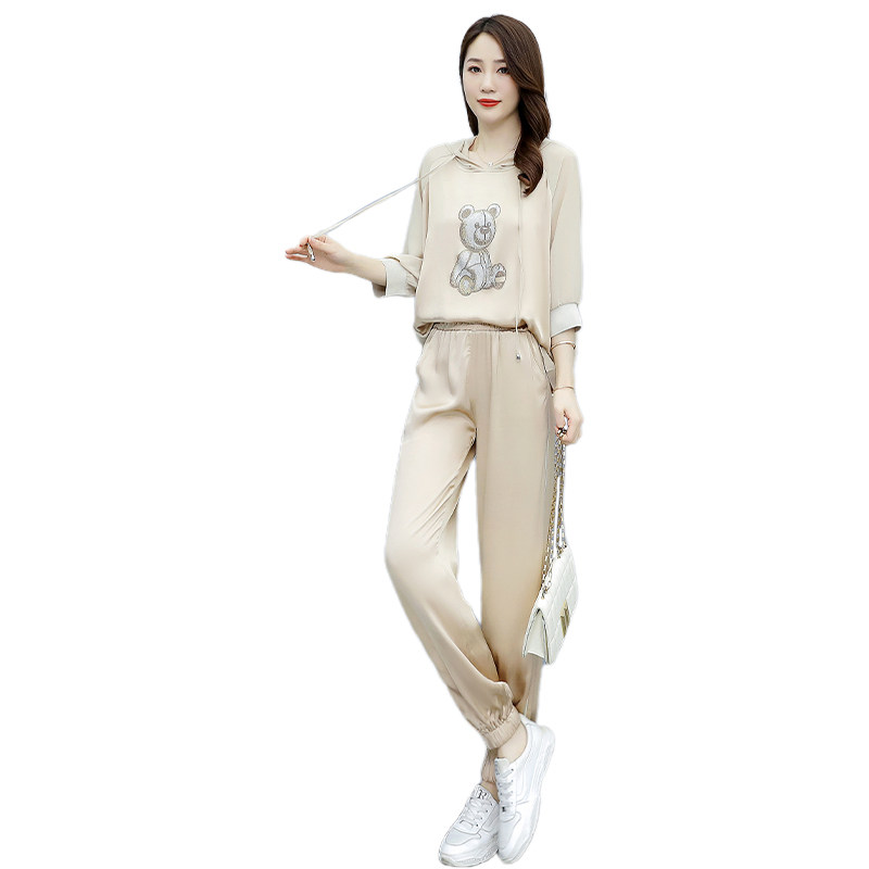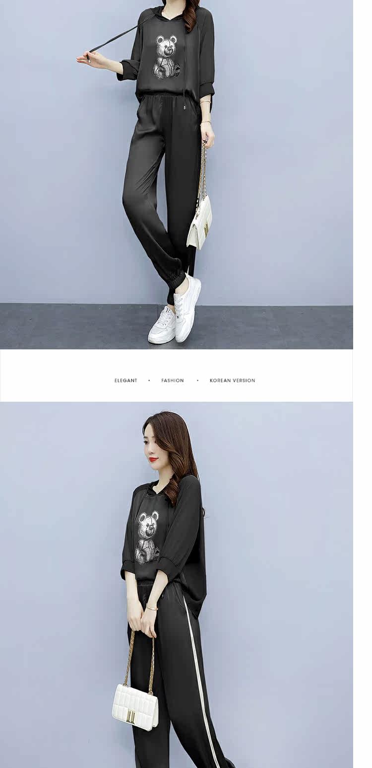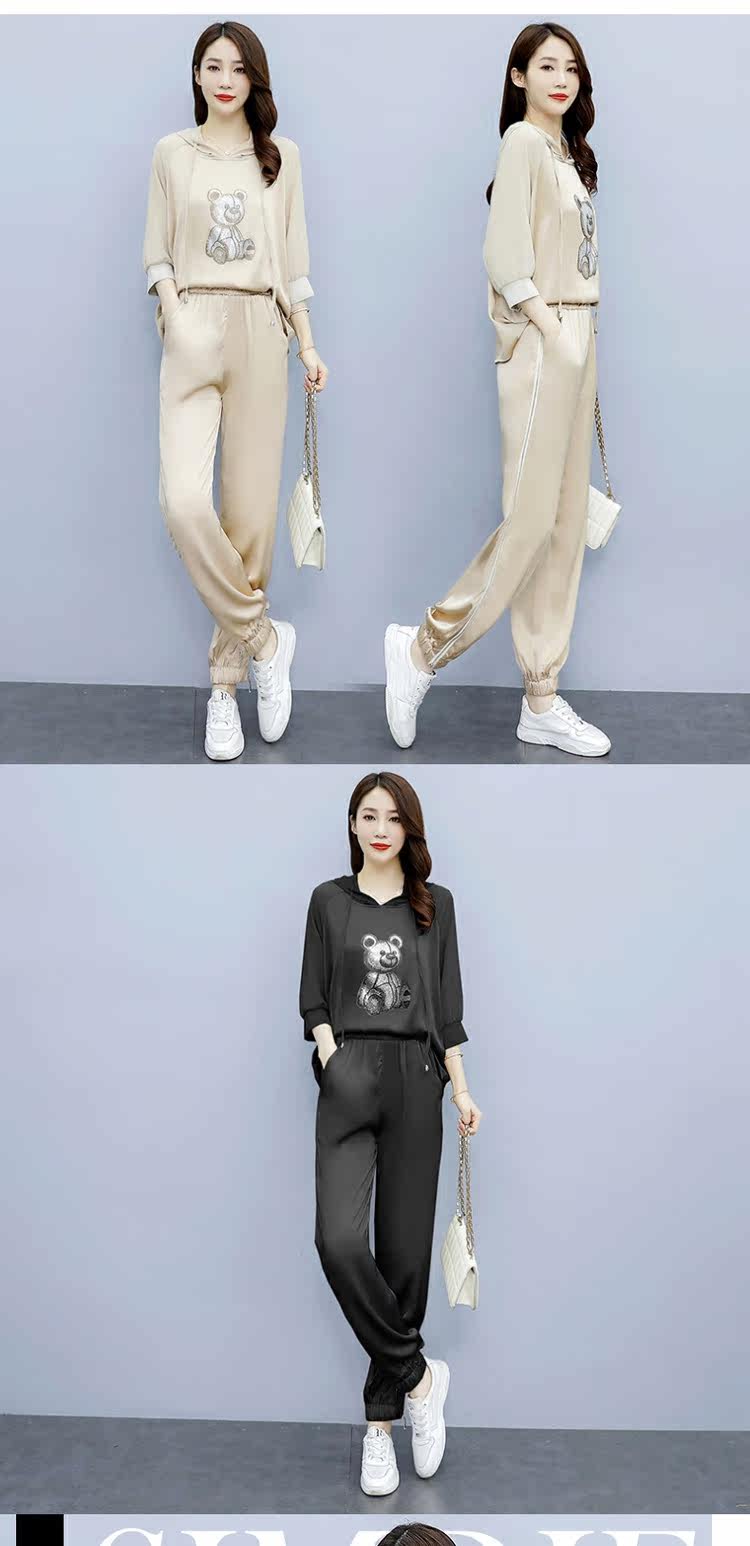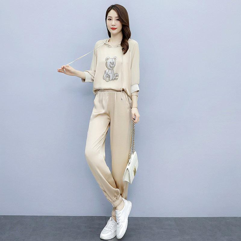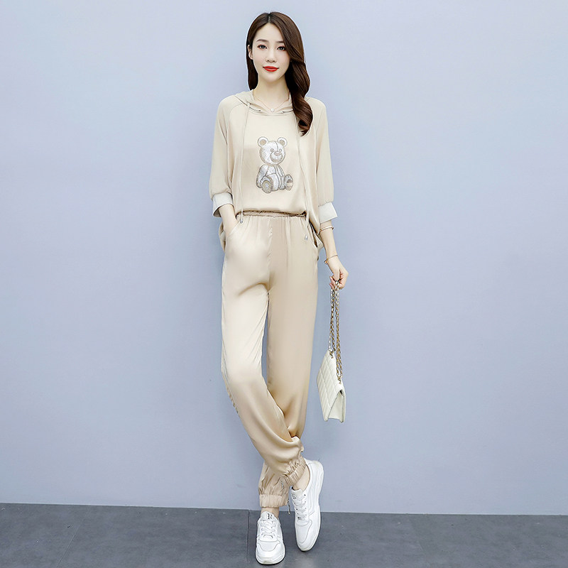 Летняя модная спортивная толстовка для отдыха, комбинезон, штаны, комплект с капюшоном, в корейском стиле, популярно в интернете