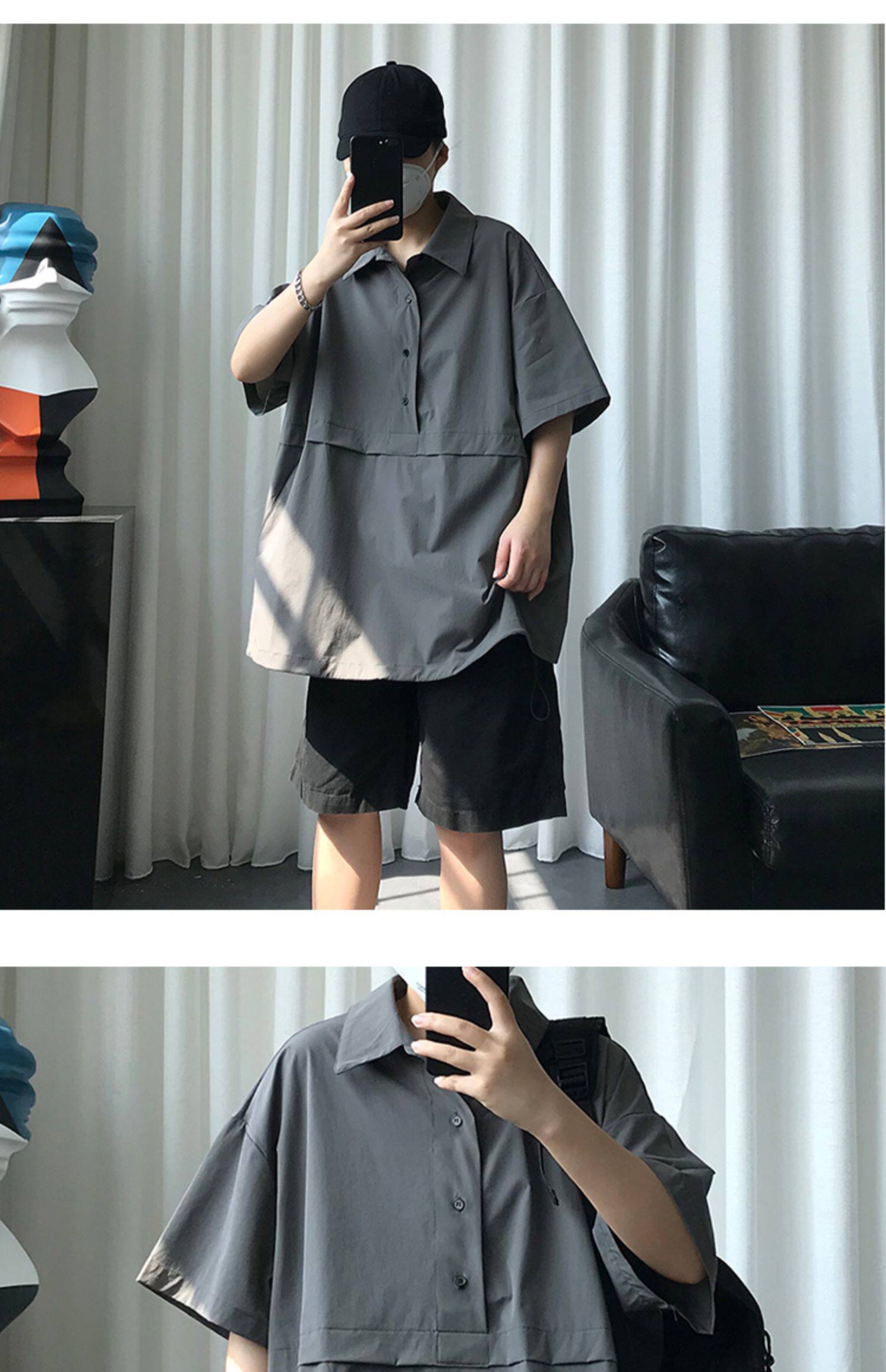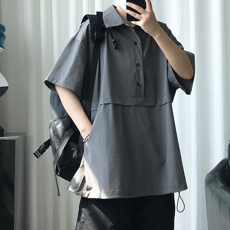Однотонная трендовая футболка с коротким рукавом для отдыха, оверсайз, воротник поло