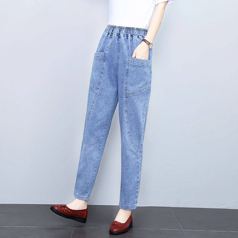 Модные джинсы для матери, штаны, осенние, высокая талия, свободный крой