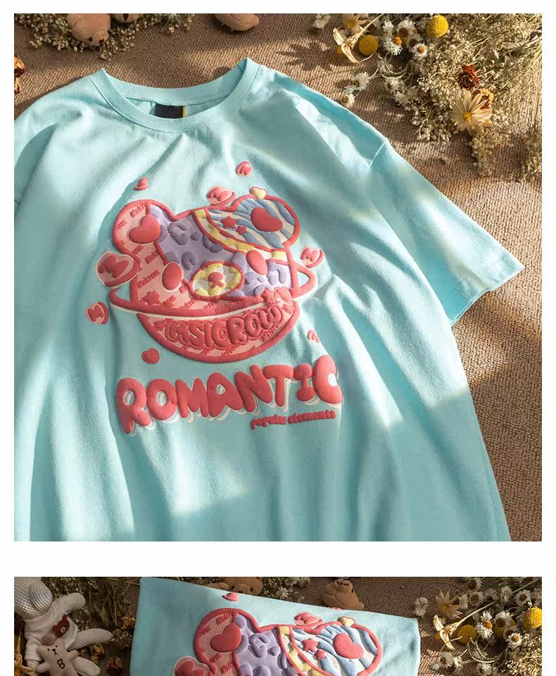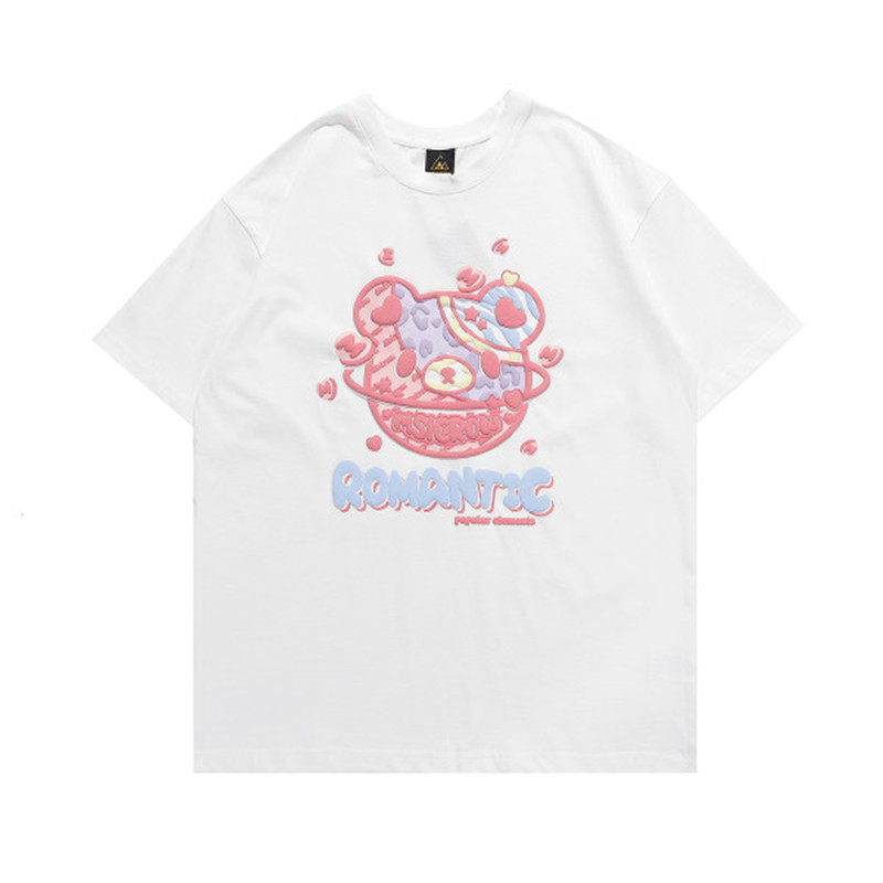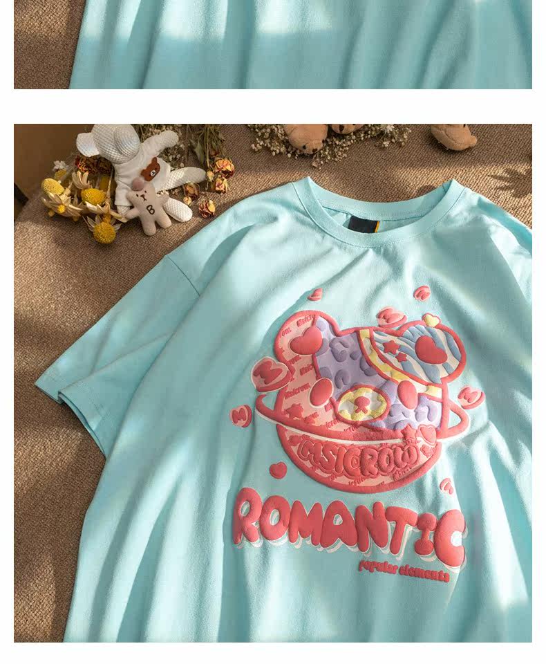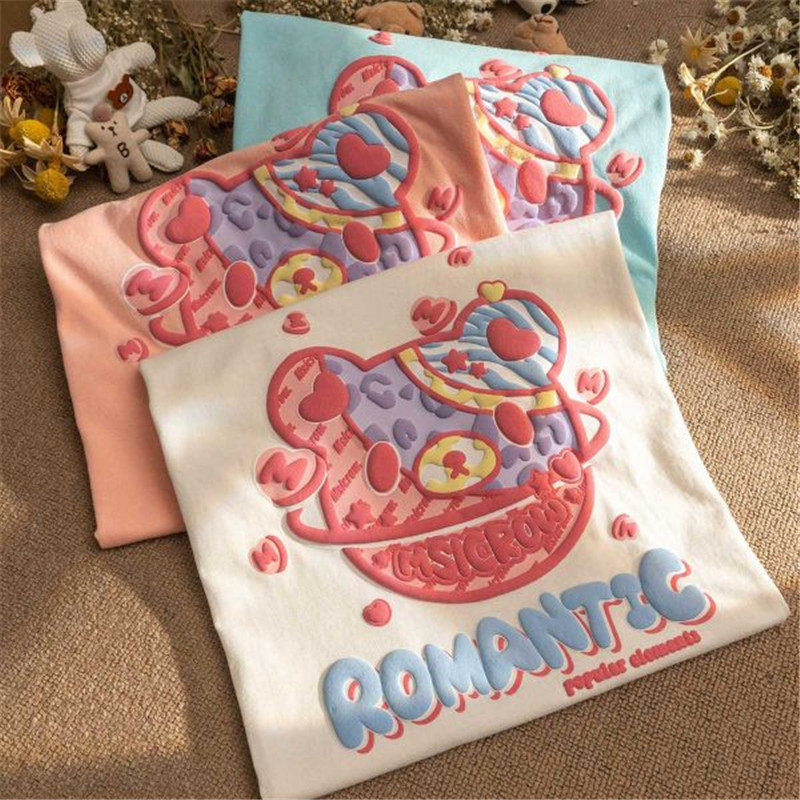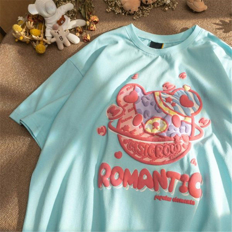 Летняя футболка с коротким рукавом для влюбленных, европейский стиль, с медвежатами, короткий рукав, оверсайз