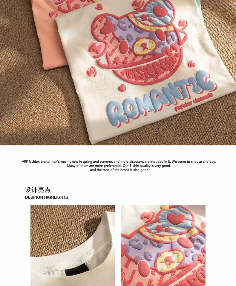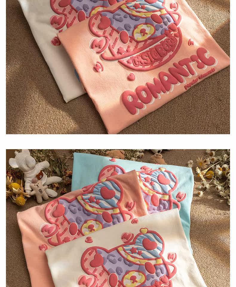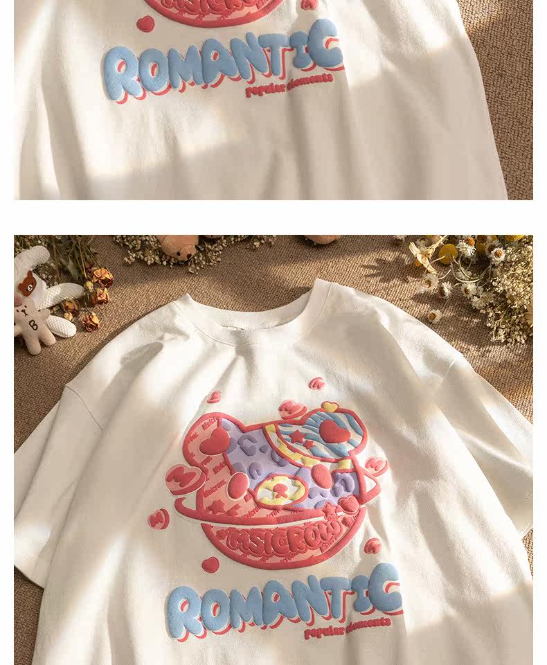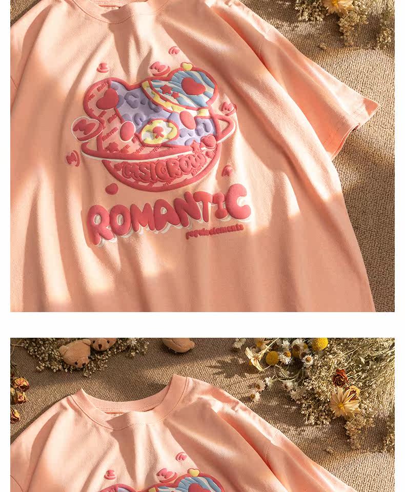 Летняя футболка с коротким рукавом для влюбленных, европейский стиль, с медвежатами, короткий рукав, оверсайз