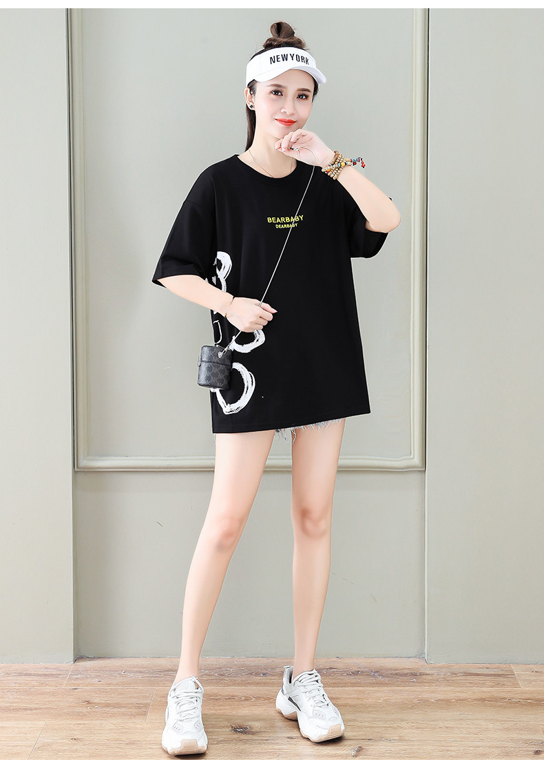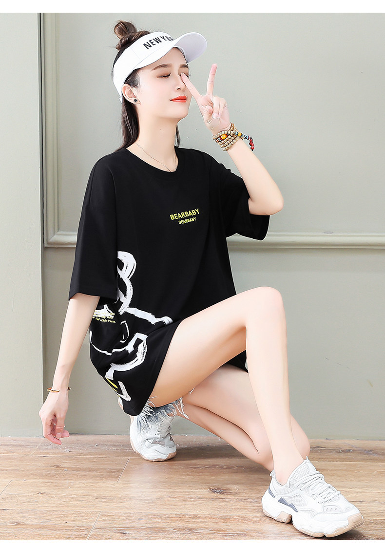 Длинная летняя тонкая футболка с коротким рукавом, средней длины, с медвежатами, коллекция 2023, премиум класс, свободный крой
