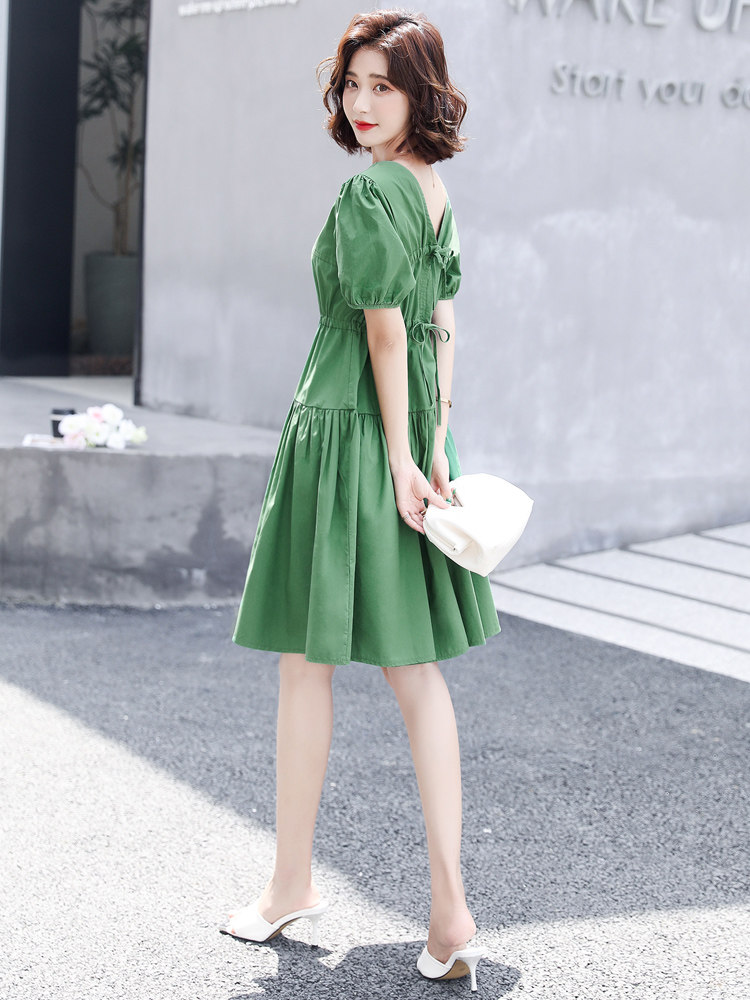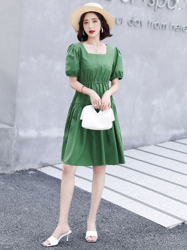 Платье, длинная юбка, французский стиль, квадратный вырез, рукава фонарики, коллекция 2021
