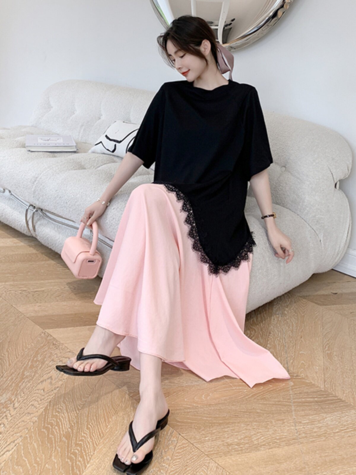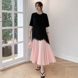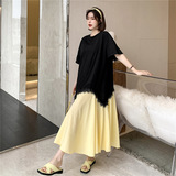 Летнее платье для отдыха, длинная юбка, длинный комплект, платье-футболка, свободный прямой крой, оверсайз, длина макси