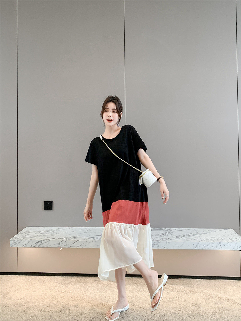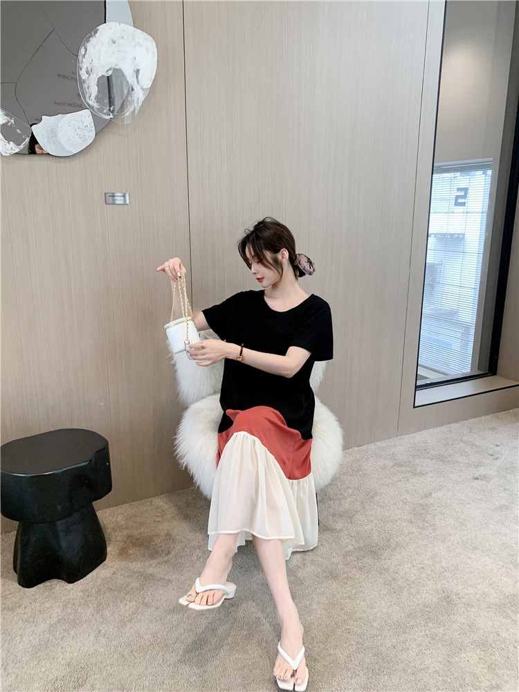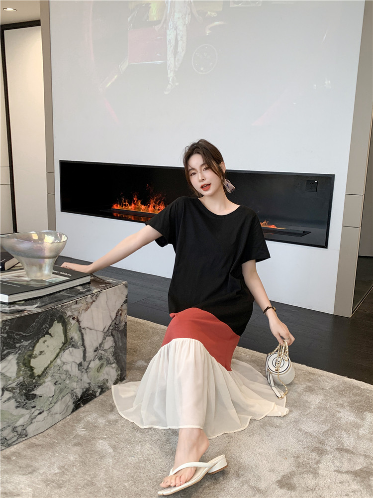 Летнее платье для отдыха, длинный комплект, длинная юбка, платье-футболка, оверсайз