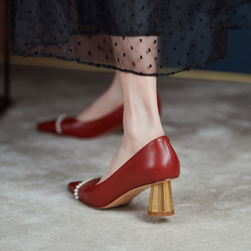 美利拉 ПересечениеPoly Head Nude Single Shoes 2021 Новая осенняя досуга Профессиональная работа с грубыми каблуками CK Высокие каблуки