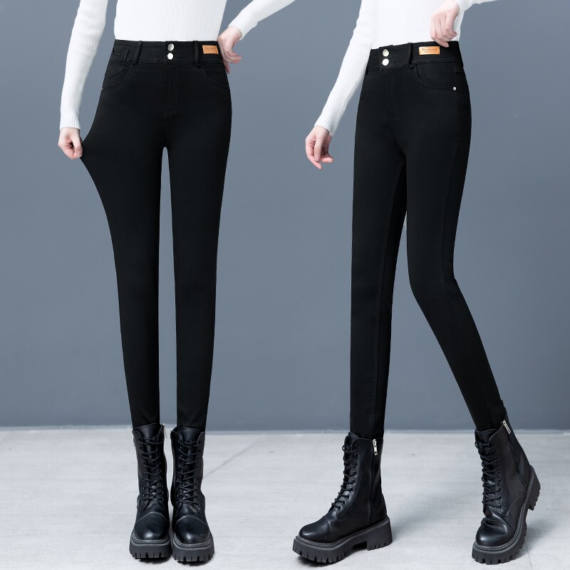 Черные весенние осенние штаны для отдыха, приталенные эластичные флисовые леггинсы, карандаш