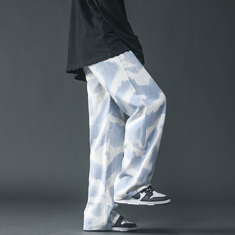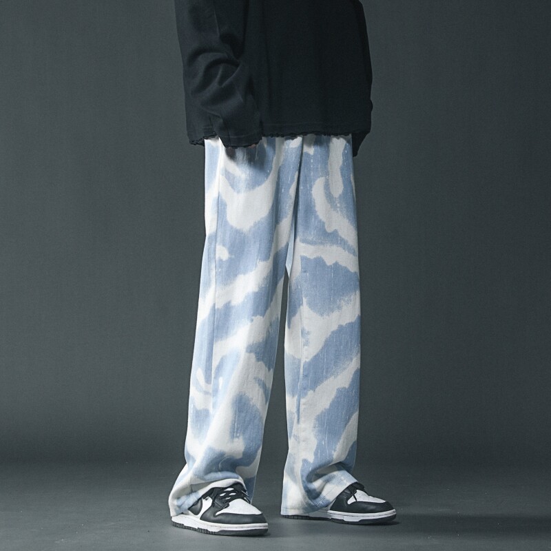Синий и белый галстук -джинсовая джинсовая мужская высокая улица, бренд с брендом высокого уровня, ощущение красивой атмосферы