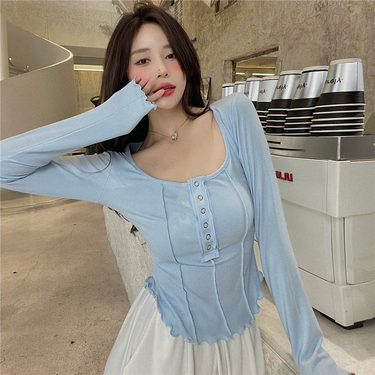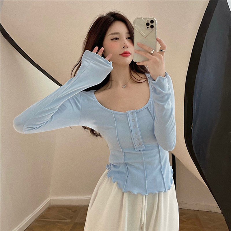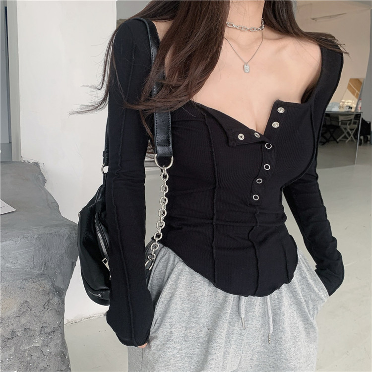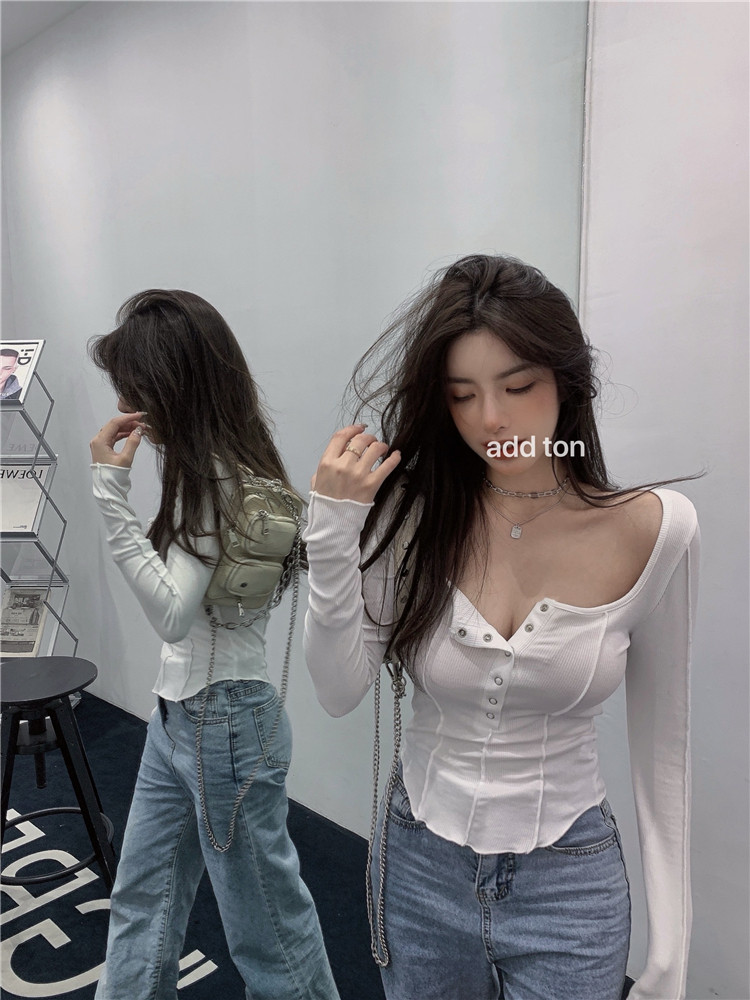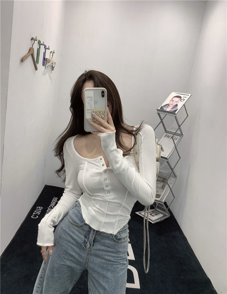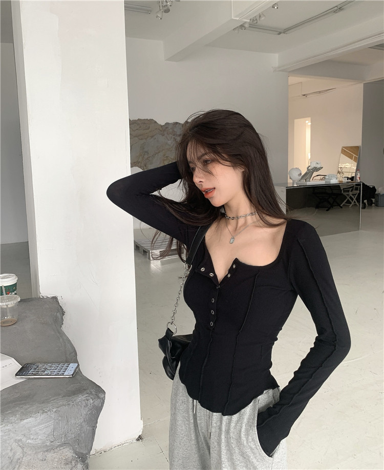 Осенний приталенный сексуальный базовый приятный телу лонгслив, коллекция 2022