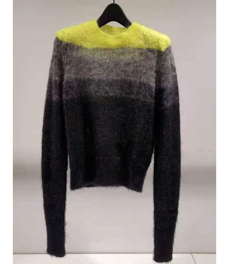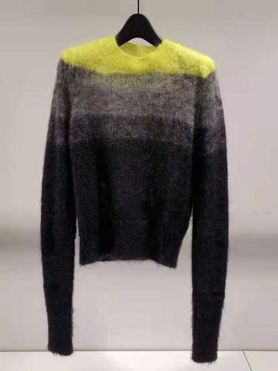 Демисезонный цветной свитер с круглым воротником, короткий трикотажный лонгслив, градиент, облегающий крой