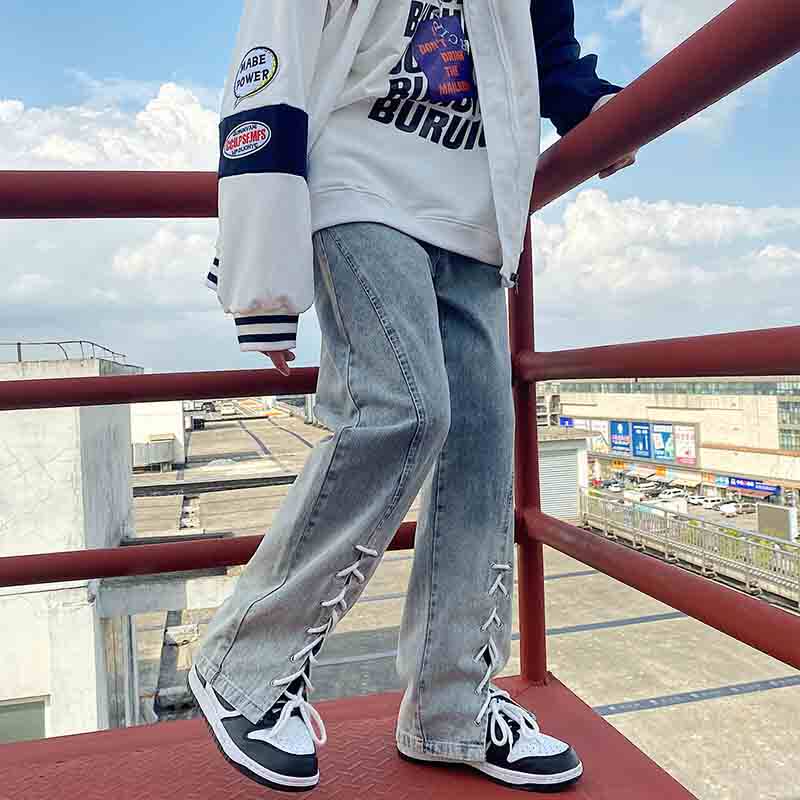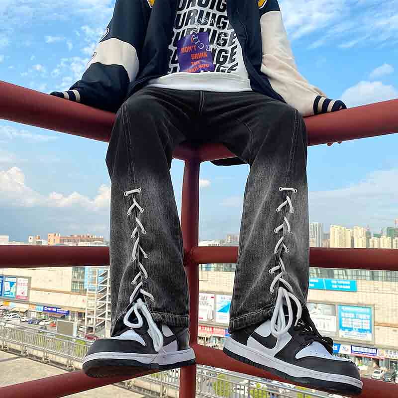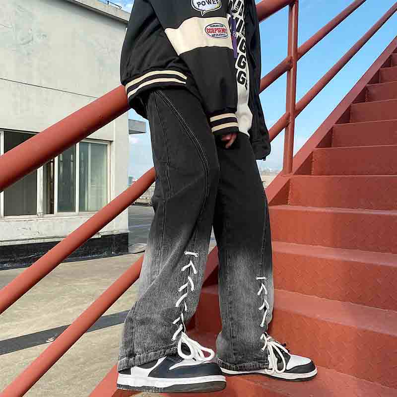 Tide, штаны, джинсы, дизайнерский ремень, в американском стиле, градиент, тренд сезона, свободный крой
