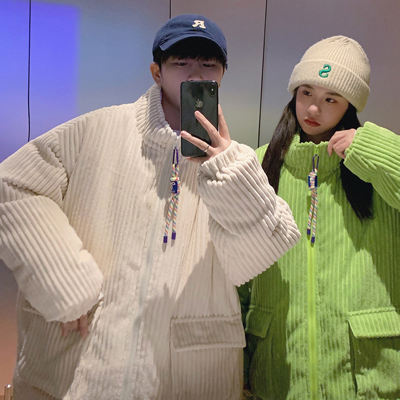 Tide, флуоресцентная вельветовая бархатная светодиодная лента, трендовая парная одежда для влюбленных, пуховик, увеличенная толщина