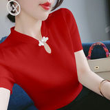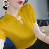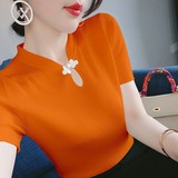 Летний ретро трикотажный приталенный свитер, базовая приятная телу футболка, короткий рукав