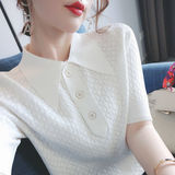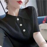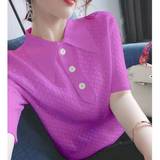 2023 Ледяной шелк вязаный вязаный женский летний лето новая свободная базовая рубашка крупная базовая рубашка, корейская версия поло, воротнич