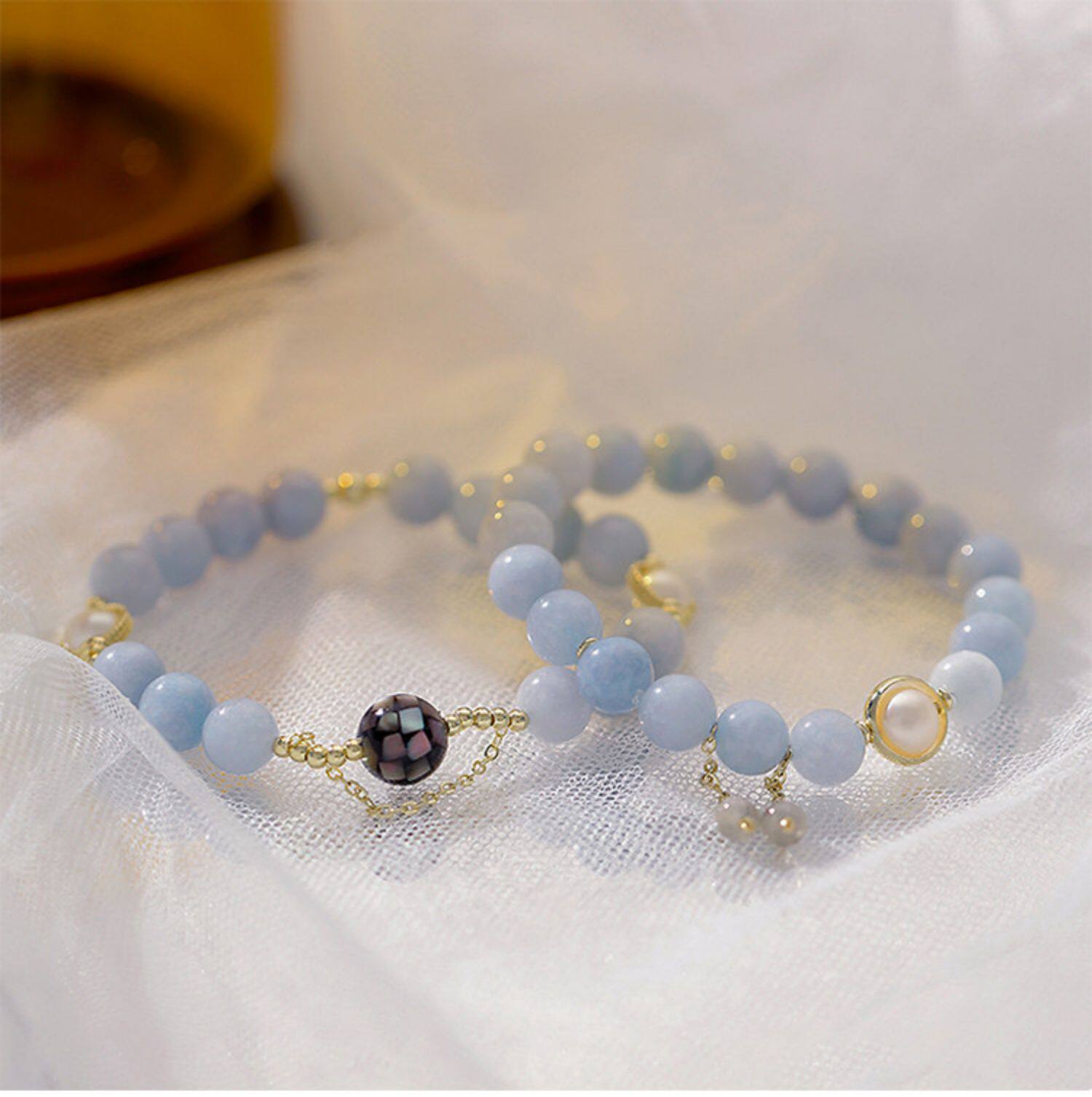 Милый свежий сапфировый браслет из жемчуга, 14 карат, DIY