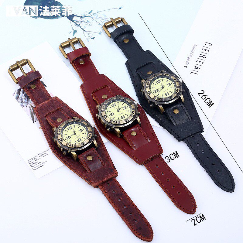Ретро кожаный браслет подходит для мужчин и женщин, часы, модный аксессуар в стиле хип-хоп, в стиле панк