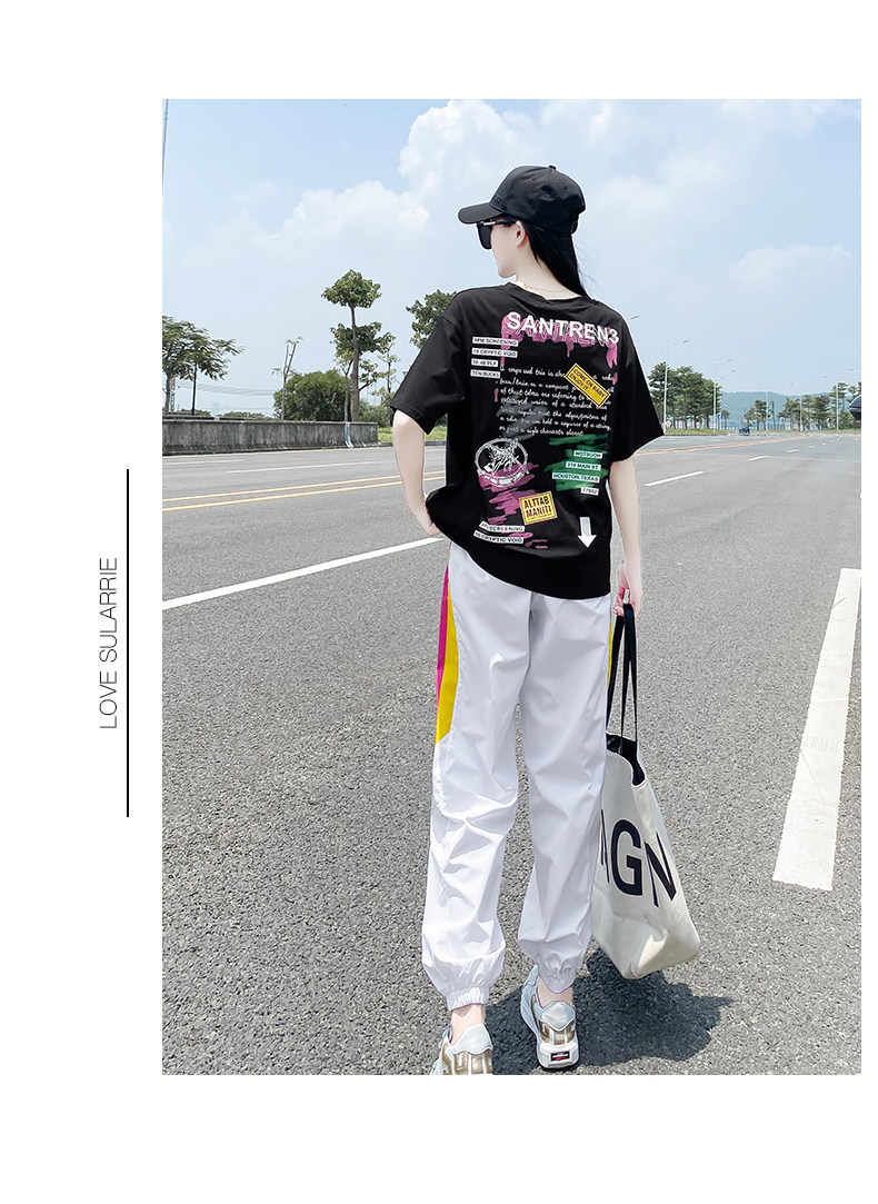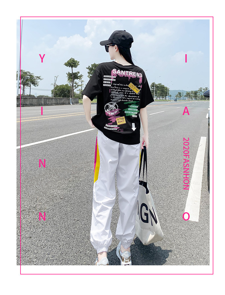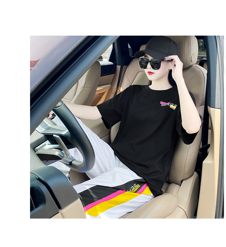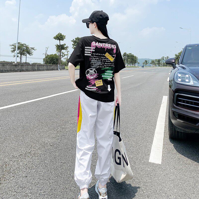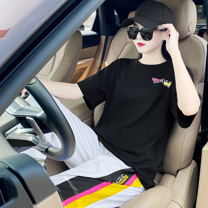 Летний комплект, спортивный костюм с буквами, футболка, в корейском стиле