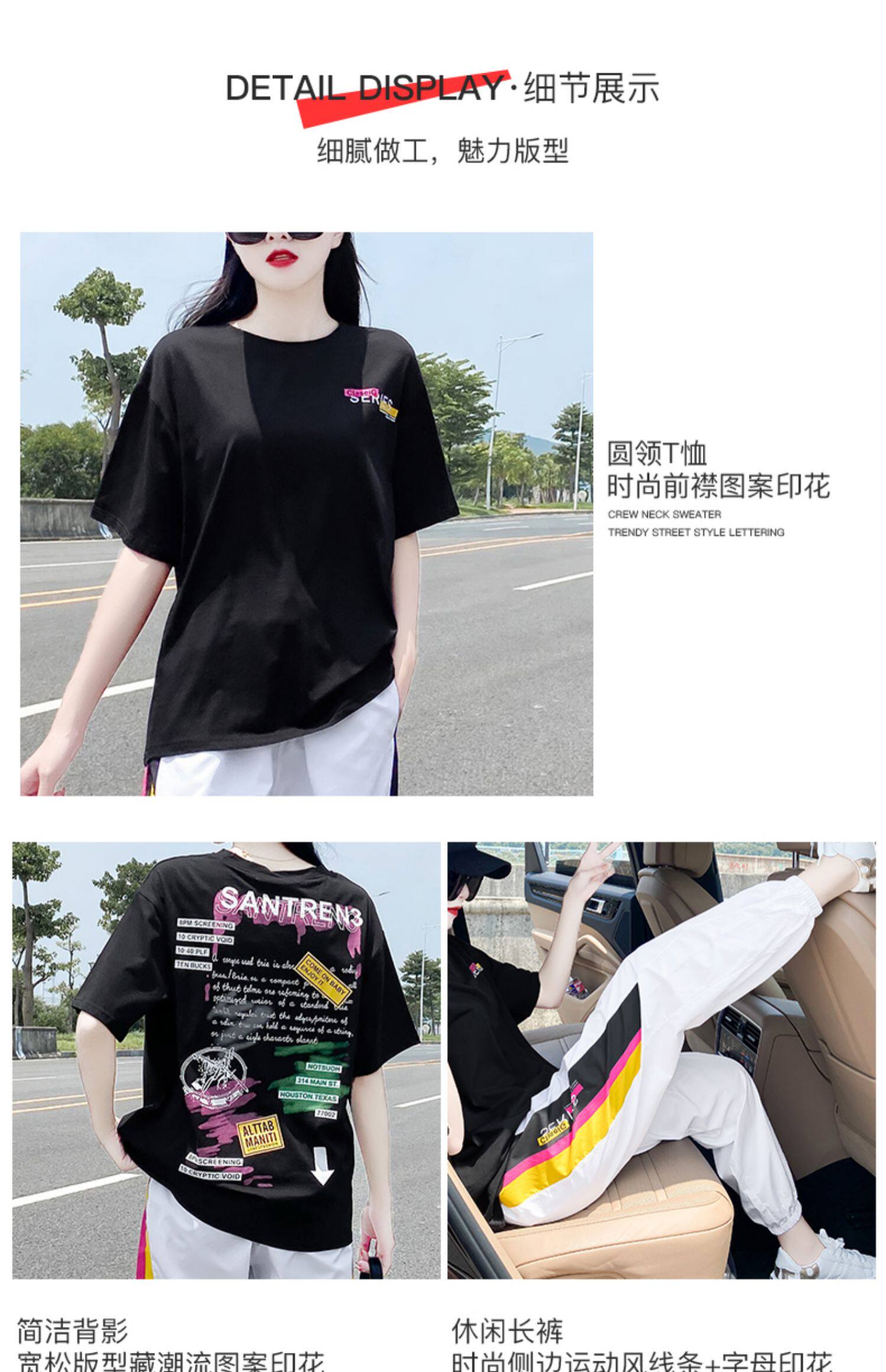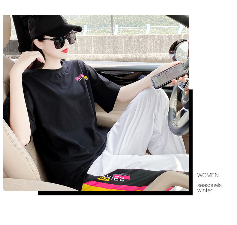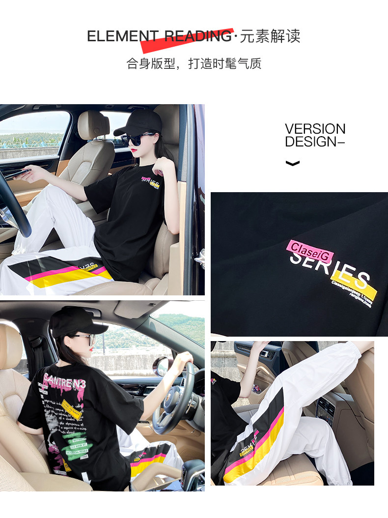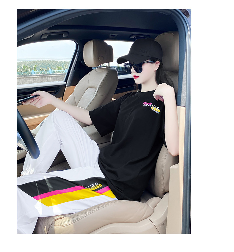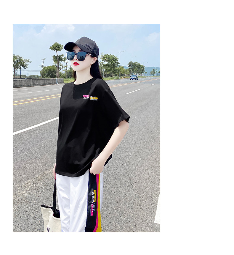 Летний комплект, спортивный костюм с буквами, футболка, в корейском стиле