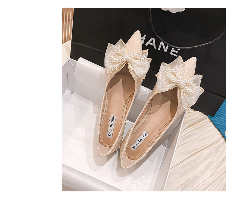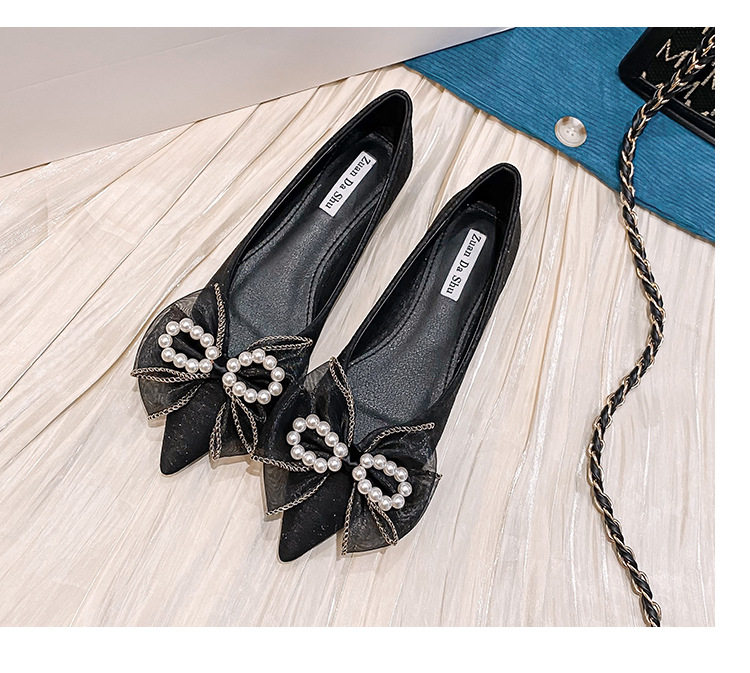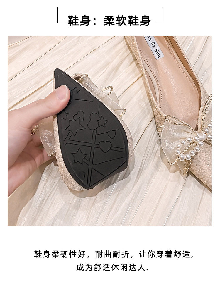 Meiling ~ Flat -Hotomed Girl 2022 Весна Новая универсальная поздняя ночная ветряная жемчужная заостренная голова мягкое дно 鞵