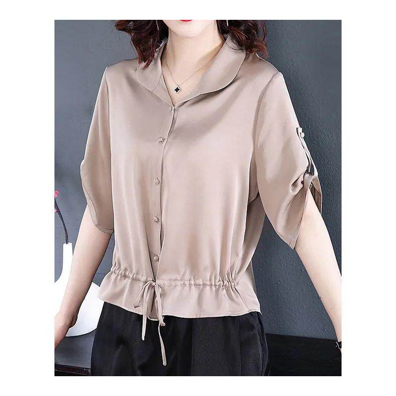 Шифоновая летняя однотонная модная рубашка, городской стиль, свободный крой, большой размер, в корейском стиле