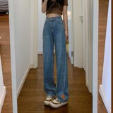 Прямые свободные джинсы, летние штаны, высокая талия, в корейском стиле, свободный крой