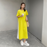 Платье для отдыха, комплект, длинная юбка, платье-футболка, оверсайз, свободный прямой крой