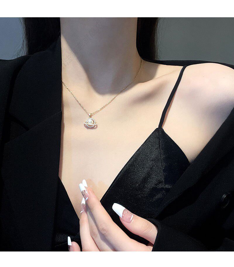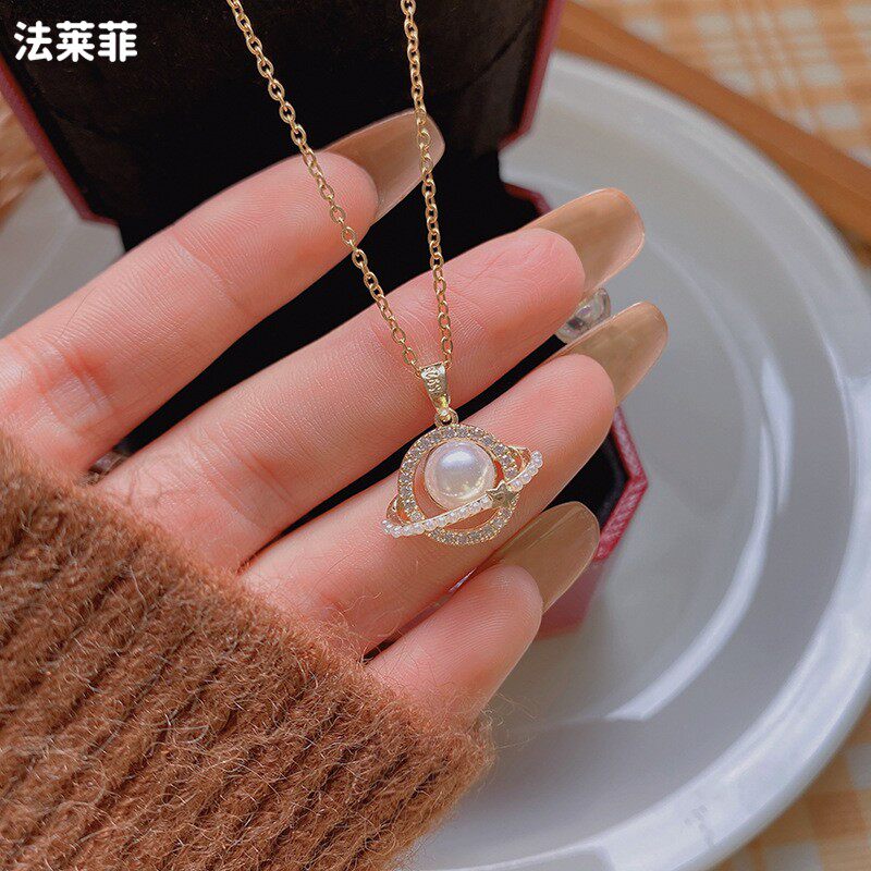 Дизайнерское ожерелье из нержавеющей стали из жемчуга, подвеска с цирконом, универсальный аксессуар, цепочка до ключиц, простой и элегантный дизайн, тренд сезона