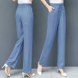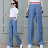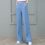 Шелковые джинсы, летние тонкие штаны для отдыха, высокая талия, свободный прямой крой