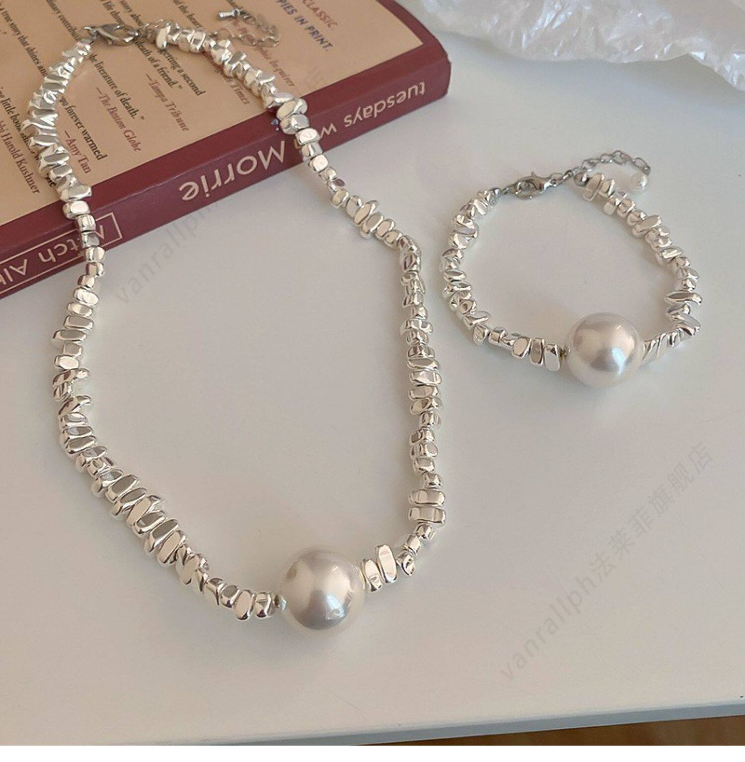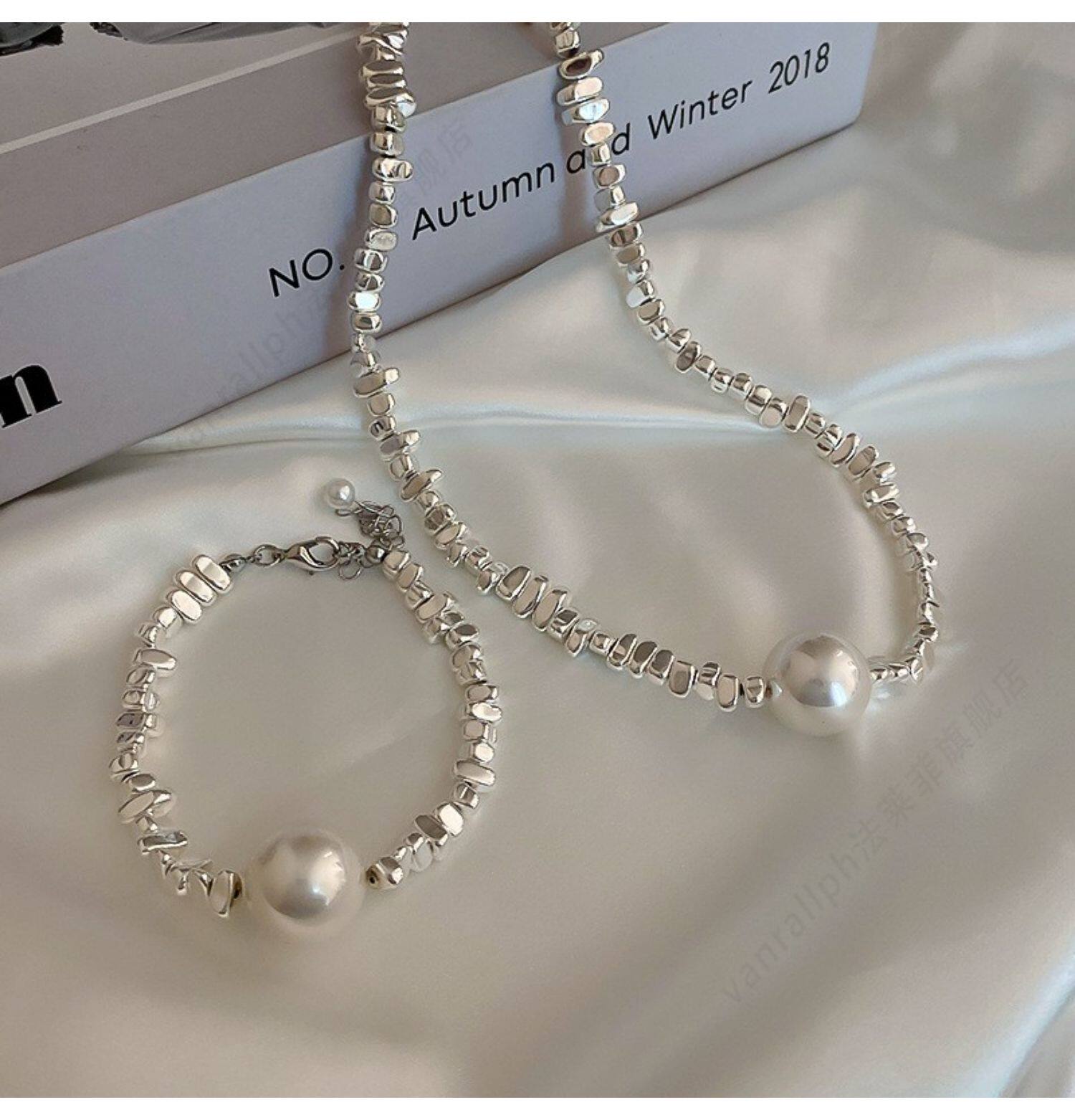 Брендовое ожерелье из жемчуга, ретро цепочка до ключиц, браслет, комплект, аксессуар, изысканный стиль