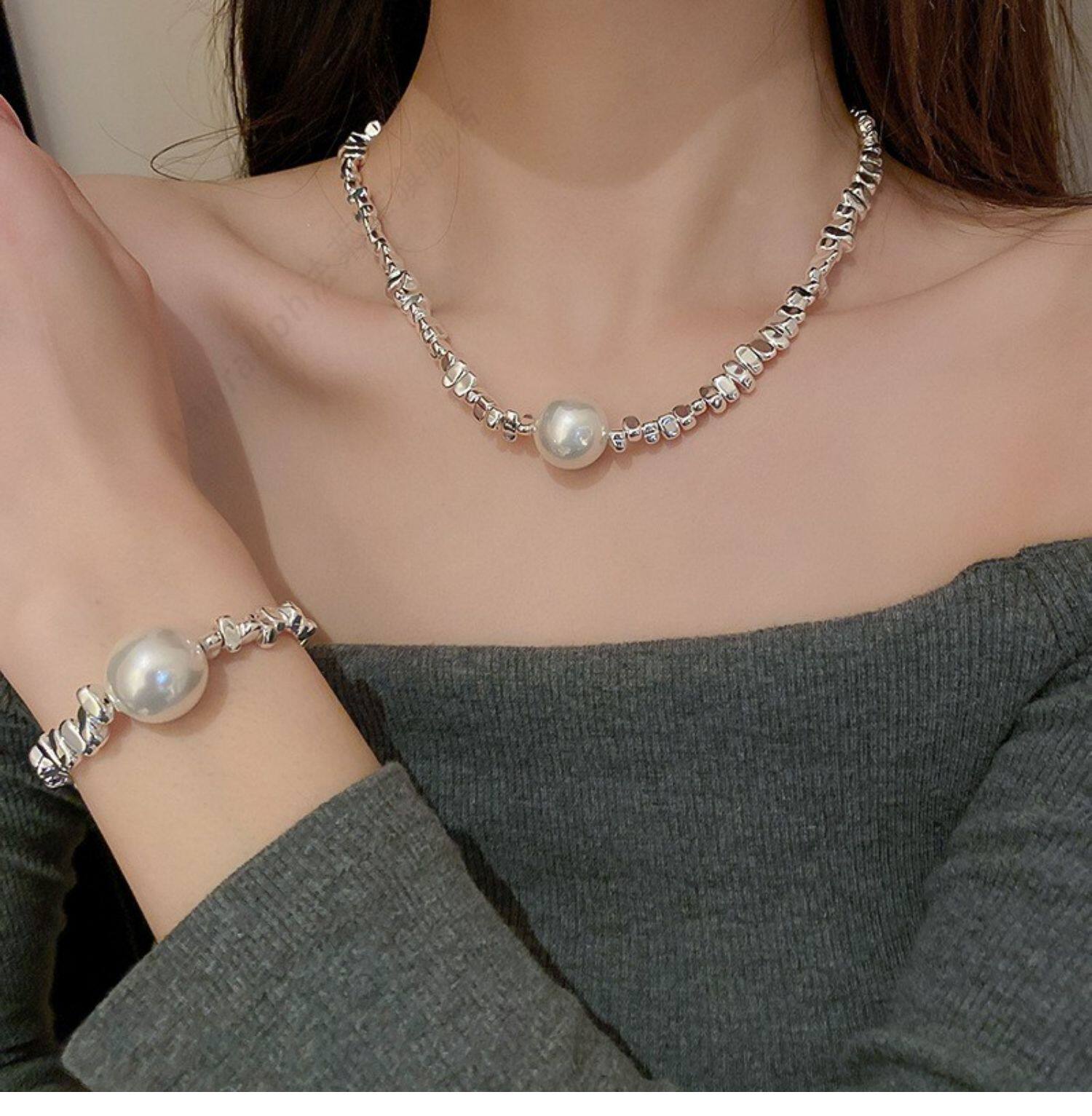 Ожерелье из жемчуга, брендовая цепочка до ключиц, ретро браслет, дизайнерское ювелирное украшение, легкий роскошный стиль, тренд сезона, коллекция 2023