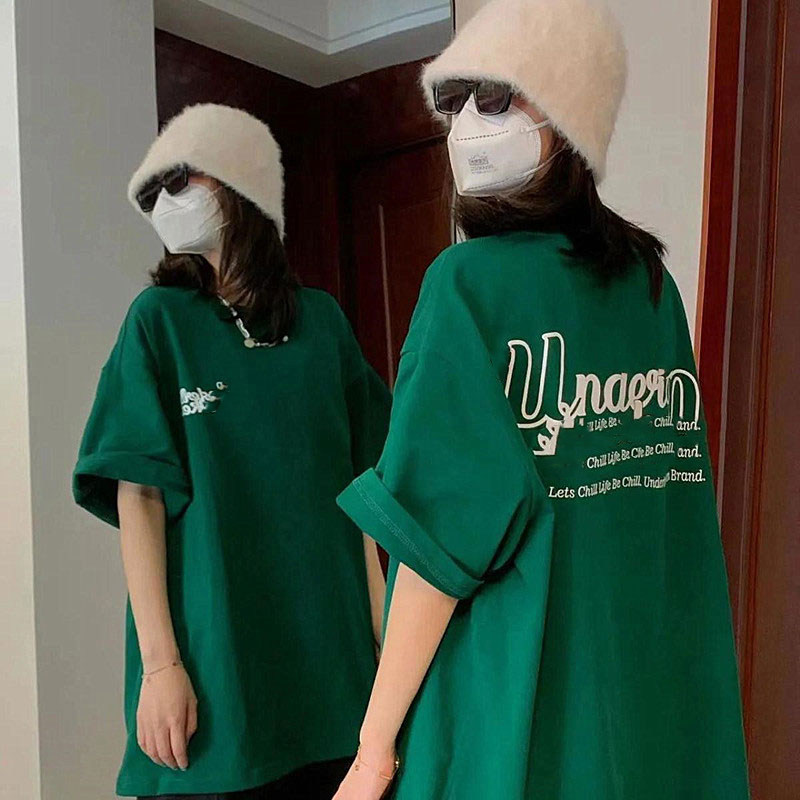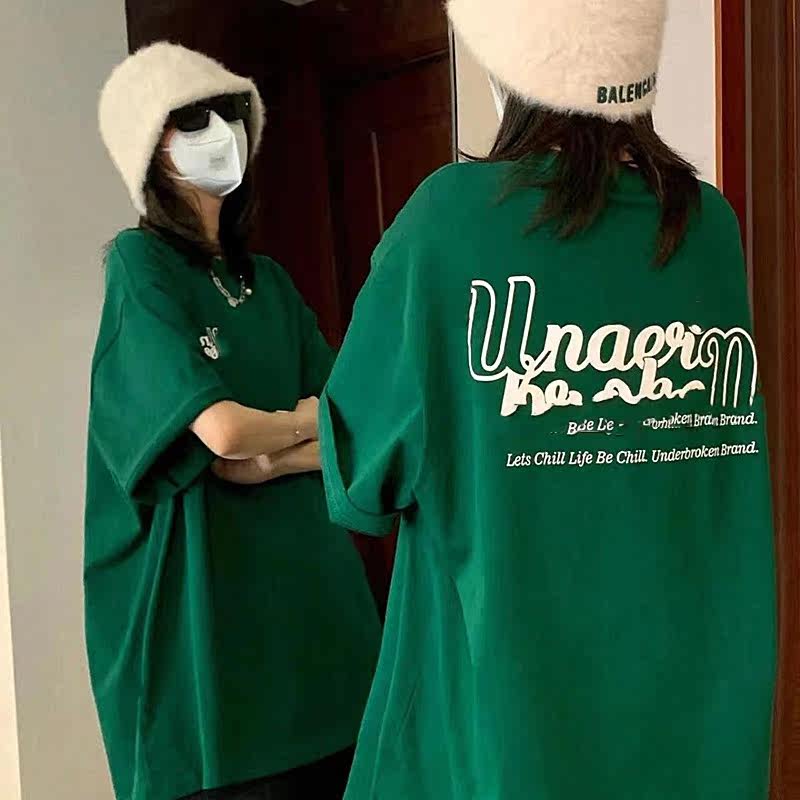 Зеленая ретро летняя футболка для влюбленных, оверсайз, в американском стиле, короткий рукав