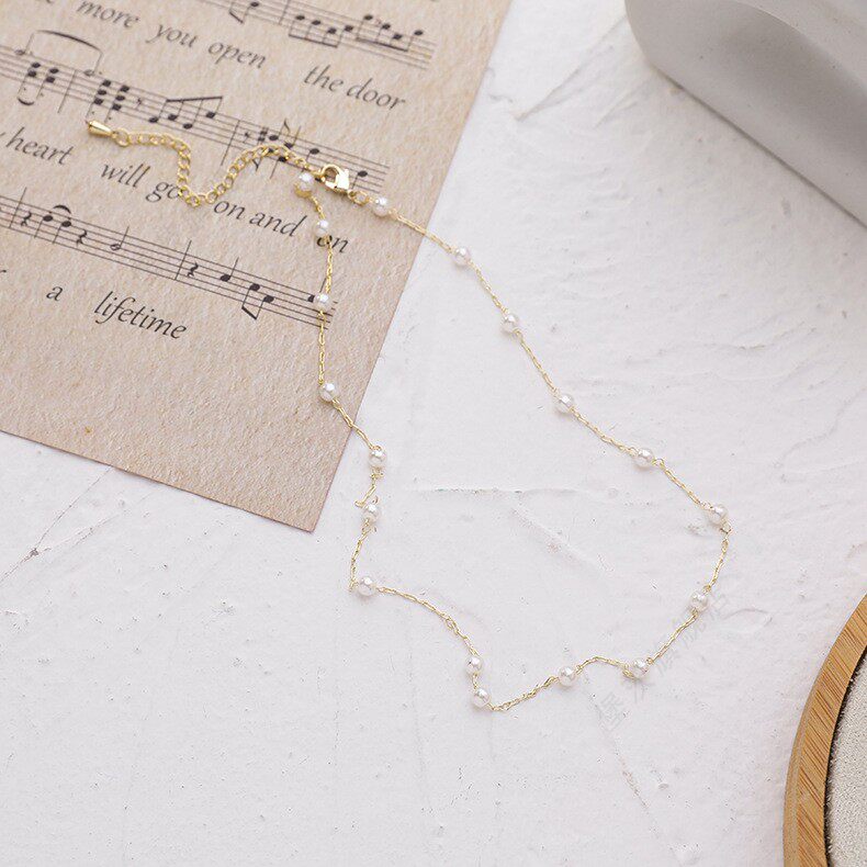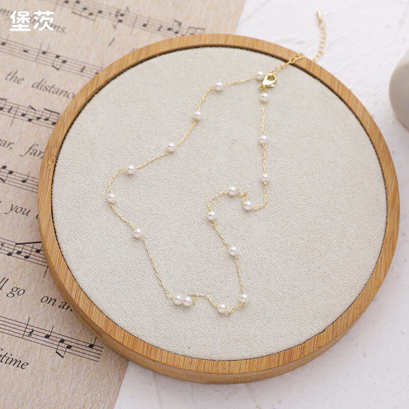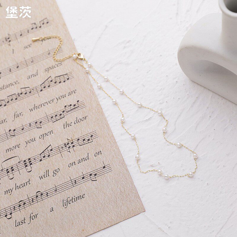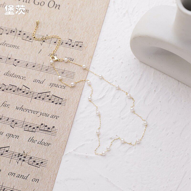 Небольшая дизайнерская свежая цепочка до ключиц из жемчуга, короткое универсальное ожерелье, простой и элегантный дизайн, популярно в интернете