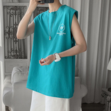 Трендовая летняя футболка без рукавов, хлопковый жилет, подходит для подростков
